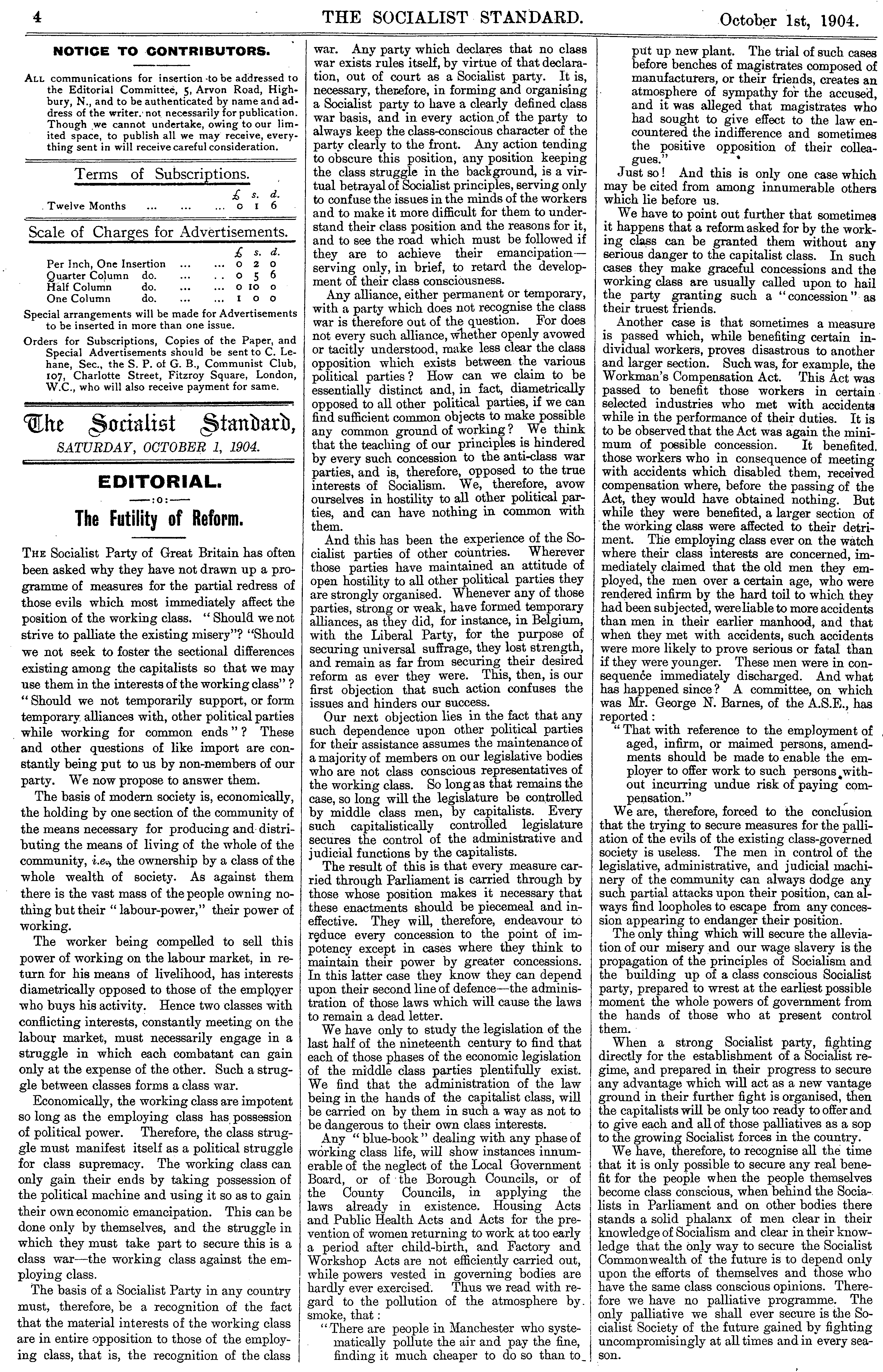 1904년 10월 ''Socialist Standard''의 사설 "개혁의 무용성"