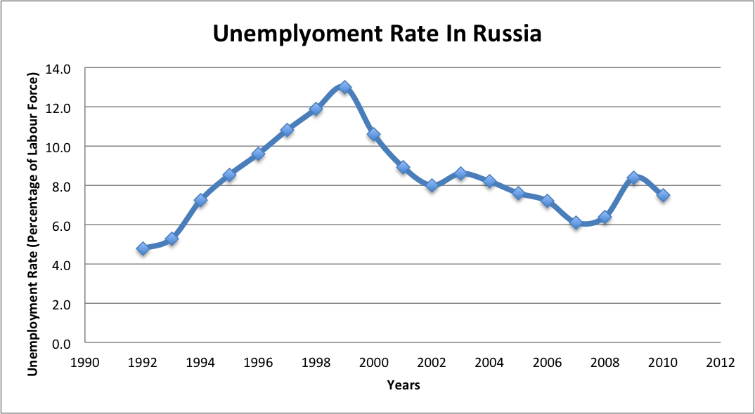 1991년 소련 붕괴와 1998년 러시아 금융 위기로 러시아는 국가부도 상황에 처했다. 이로 인해 전투기, 헬기, 전차 등을 생산하는 러시아 방위산업 역시 큰 타격을 받았다. 특히 러시아 항공 산업은 수입으로 인해 황폐화되었고, 항공우주산업과 자동차산업은 높은 보호관세 덕분에 간신히 유지되었다.[27] 1998년에는 민항기가 56대만 생산되었고, 2000년에는 단 4대만 생산될 정도로 민간 항공 산업은 심각한 침체를 겪었다.[28]