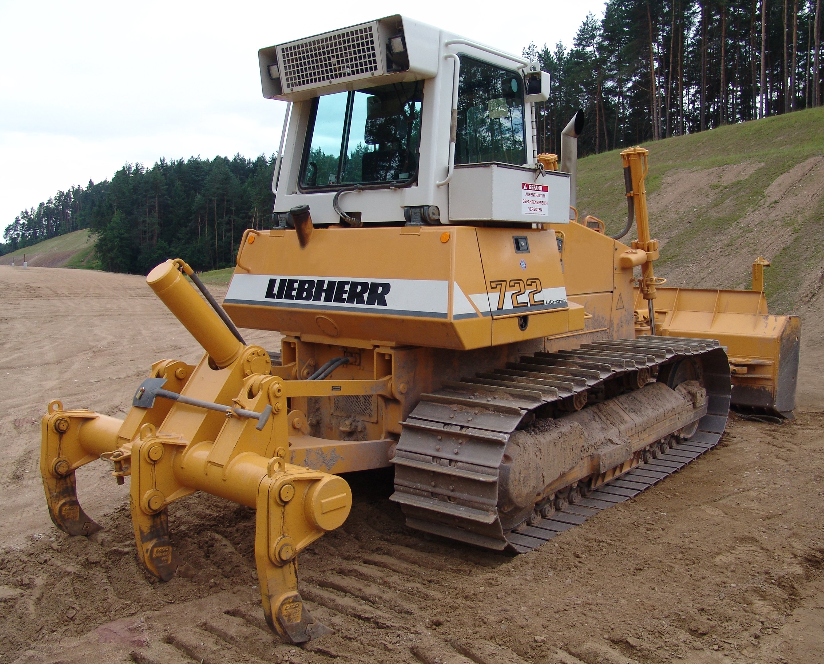 불도저는 무한궤도식 트랙터 앞쪽에 '블레이드'라고 불리는 배토판을 부착하여 흙을 굴착하고 밀어내어 지면을 고르는 건설기계이다.[35] 굴착 깊이는 수십cm, 흙을 나르는 거리는 30~50m 정도이지만, 굴착력이 크고 급경사면에서도 작업할 수 있어 토목공사에 필수적이다.[35] 리퍼(ripper)와 같은 부속 장치를 부착하여 암석 파쇄, 도랑 파기, 도목(倒木)·발근(拔根)·포장(鋪裝) 파쇄 등의 작업도 수행한다.[35][36]