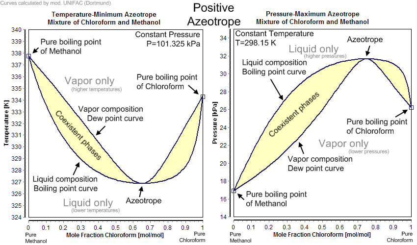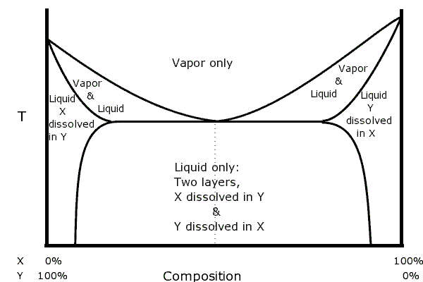 두 용매 혼합물의 끓임과 재응축은 화학 상태의 변화이므로 상 다이어그램으로 가장 잘 설명된다. 압력이 일정하게 유지되면 두 개의 가변 매개변수는 온도와 조성이다.