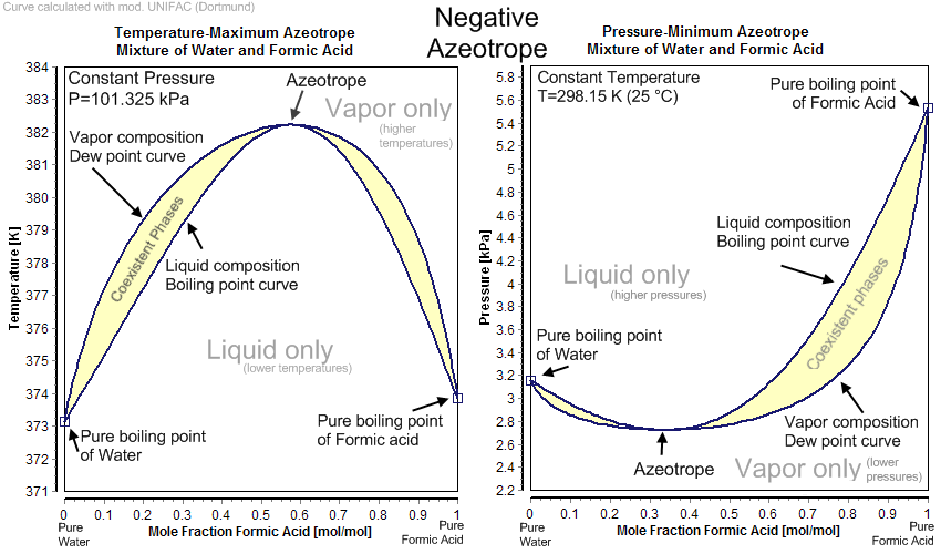 음의 공비 혼합물은 '최대 끓는점 혼합물' 또는 '압력 최소 공비 혼합물'이라고도 불린다.