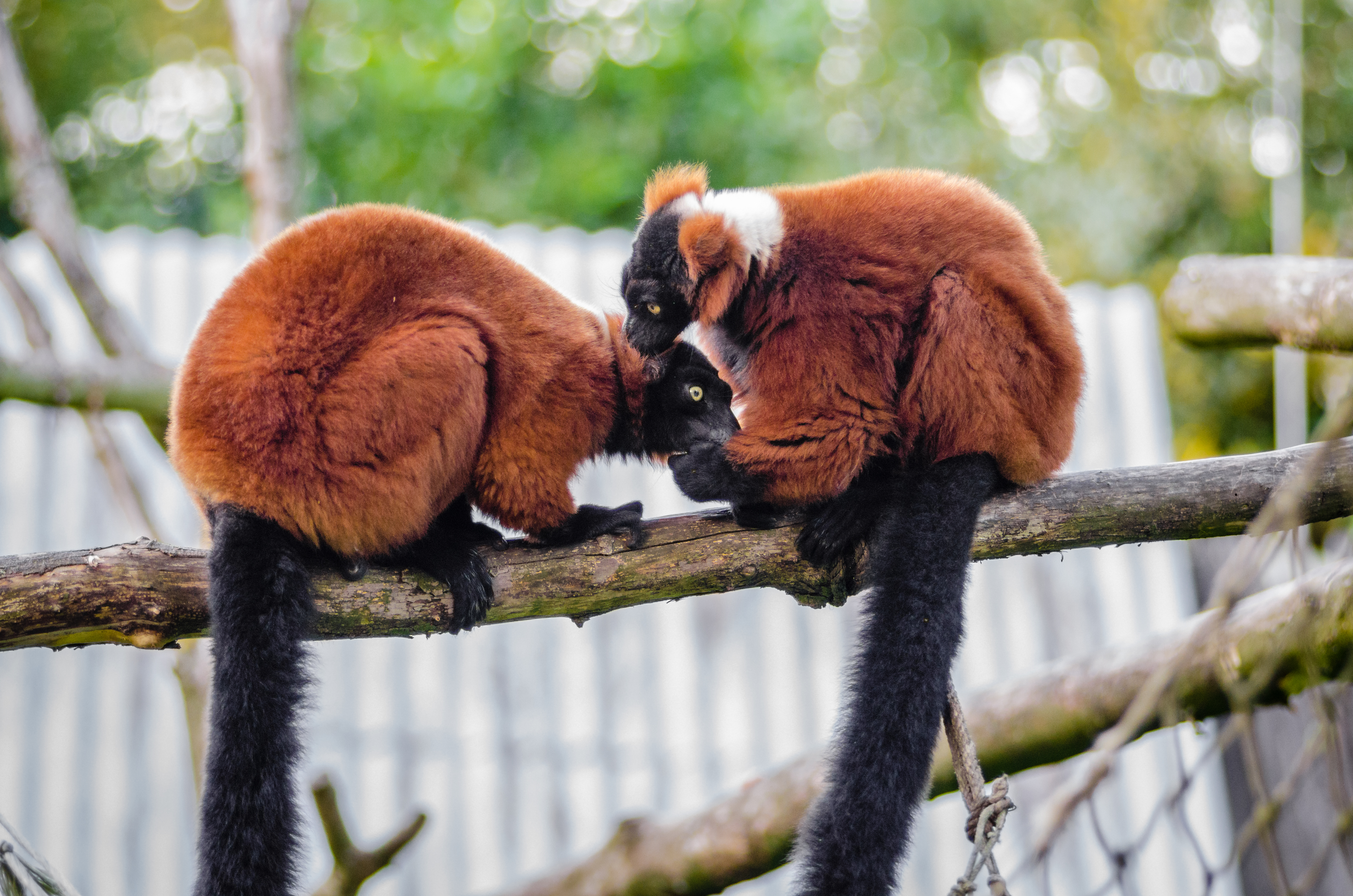 붉은목도리여우원숭이들이 서로 털을 고르는 모습