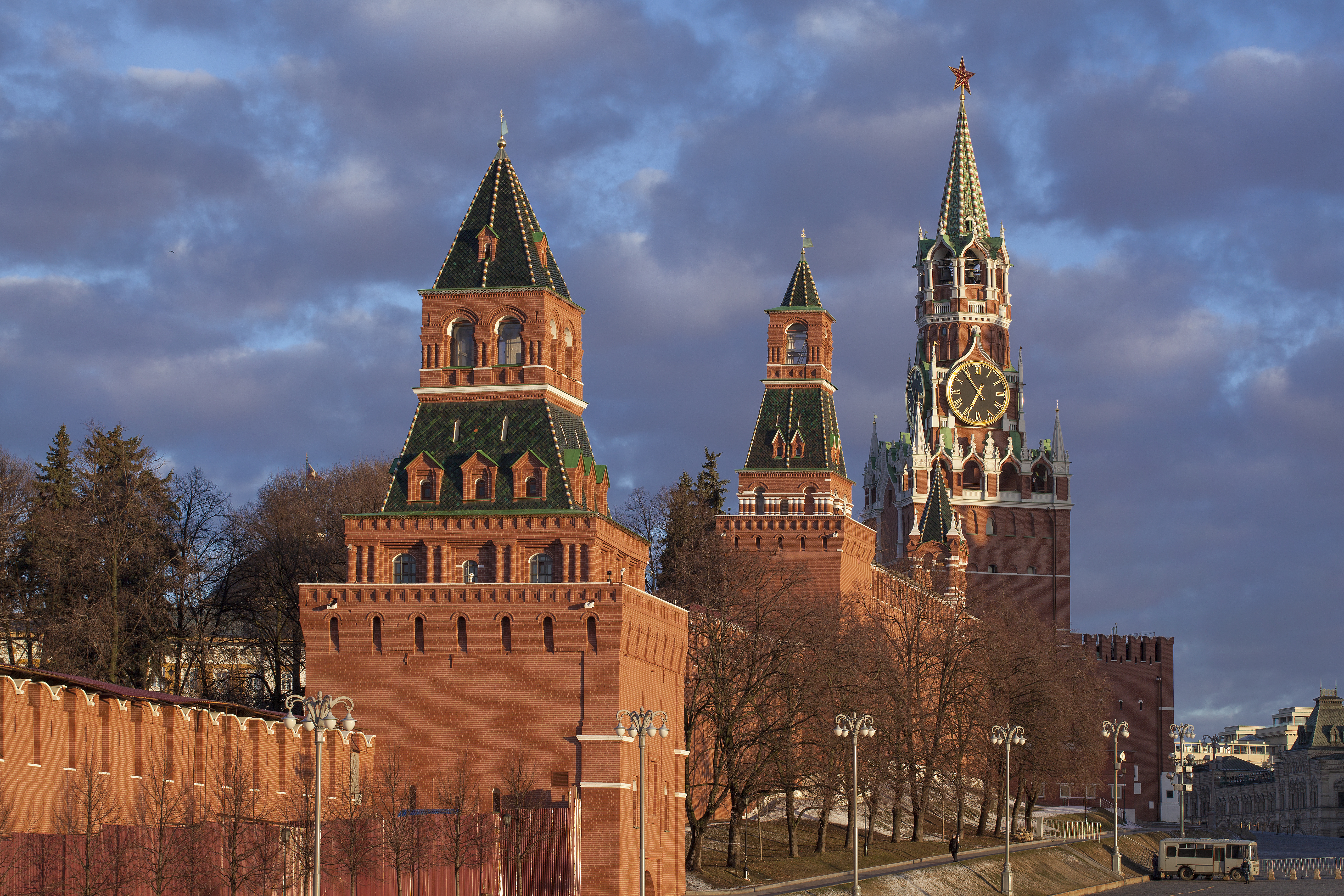 크렘린 동쪽 벽에는 니콜스카야 탑, 스파스카야 탑, 세나츠카야 탑 등이 있다.