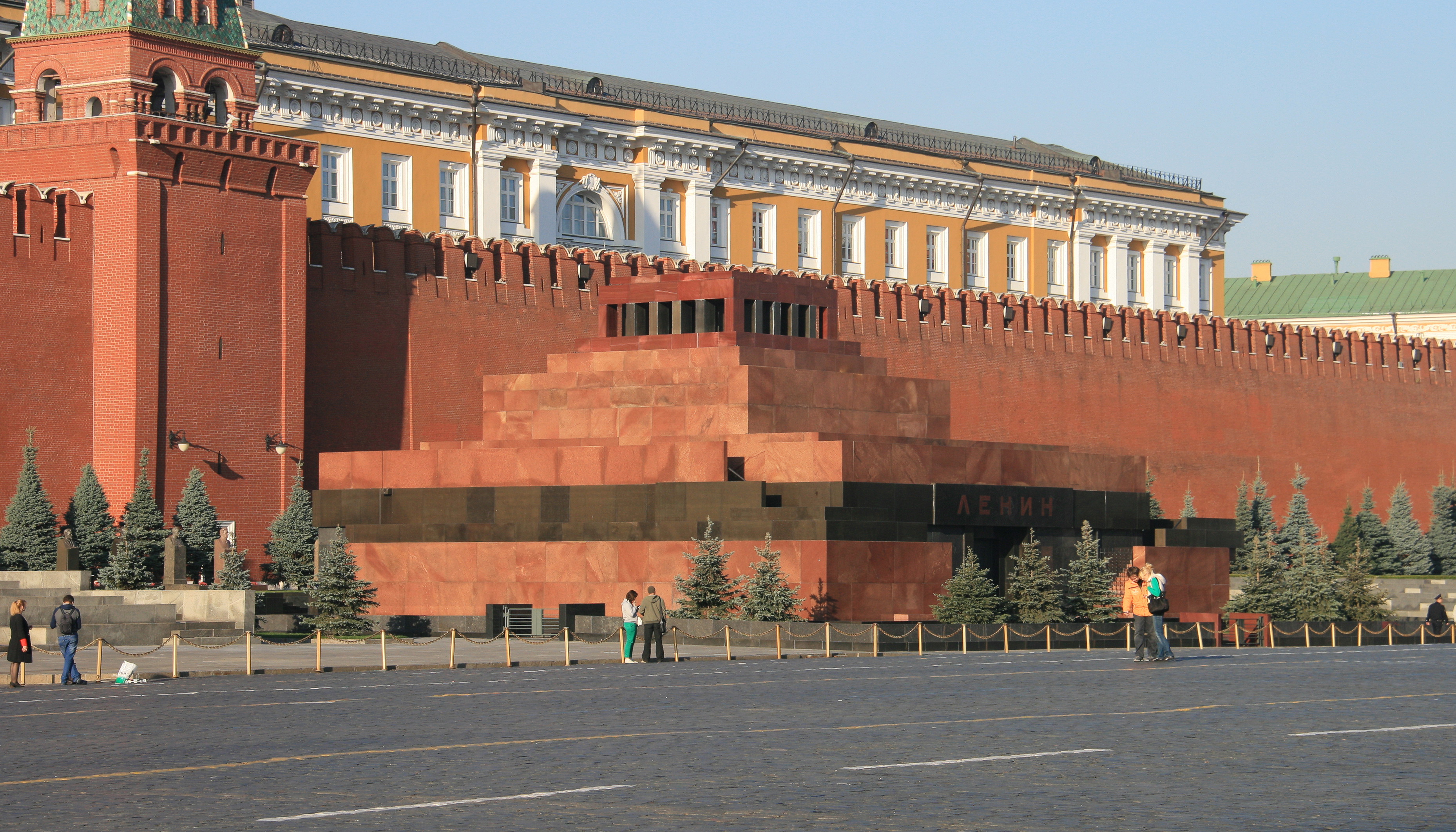 소비에트 시대의 중요한 기념물인 레닌 묘소는 붉은 광장 서쪽에 있다. 크렘린궁 벽 옆, 상원탑 높이에 자리 잡고 있는데, 거의 18세기까지 방어용 해자가 있던 곳이며, 1909년부터 1930년까지는 전차 노선이 지나가던 곳이기도 하다.[2] 묘소 안에는 호화롭게 방부 처리된 블라디미르 레닌의 시신이 강화 유리 관에 안치되어 있다. 오늘날에도 묘소는 특정일에 관람객에게 개방된다.[2]