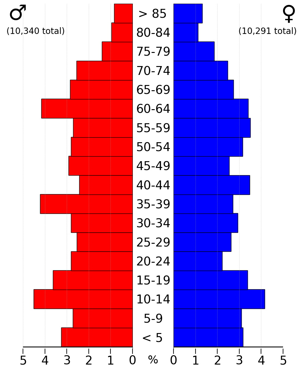 2010년 인구 조사에 따른 인구 통계 데이터는 다음과 같다.[10][20]