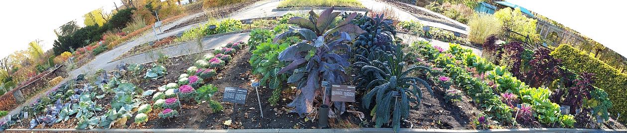 캐나다 몬트리올 식물원의 배추속 코너. 중앙의 키가 큰 식물이 케일로, 본 종에 가깝다고 여겨진다.