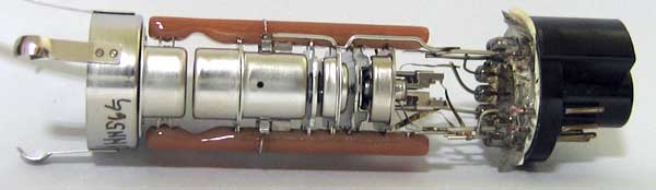 열음극을 사용하는 최초의 음극선관은 존 버트랜드 존슨(존슨 잡음이라는 용어를 만들었다)과 웨스턴 일렉트릭의 해리 와이너 와인하트에 의해 개발되었고, 1922년에 상용 제품이 되었다.[20] 열음극의 도입으로 더 낮은 가속 양극 전압과 더 높은 전자빔 전류가 가능해졌다.[21]