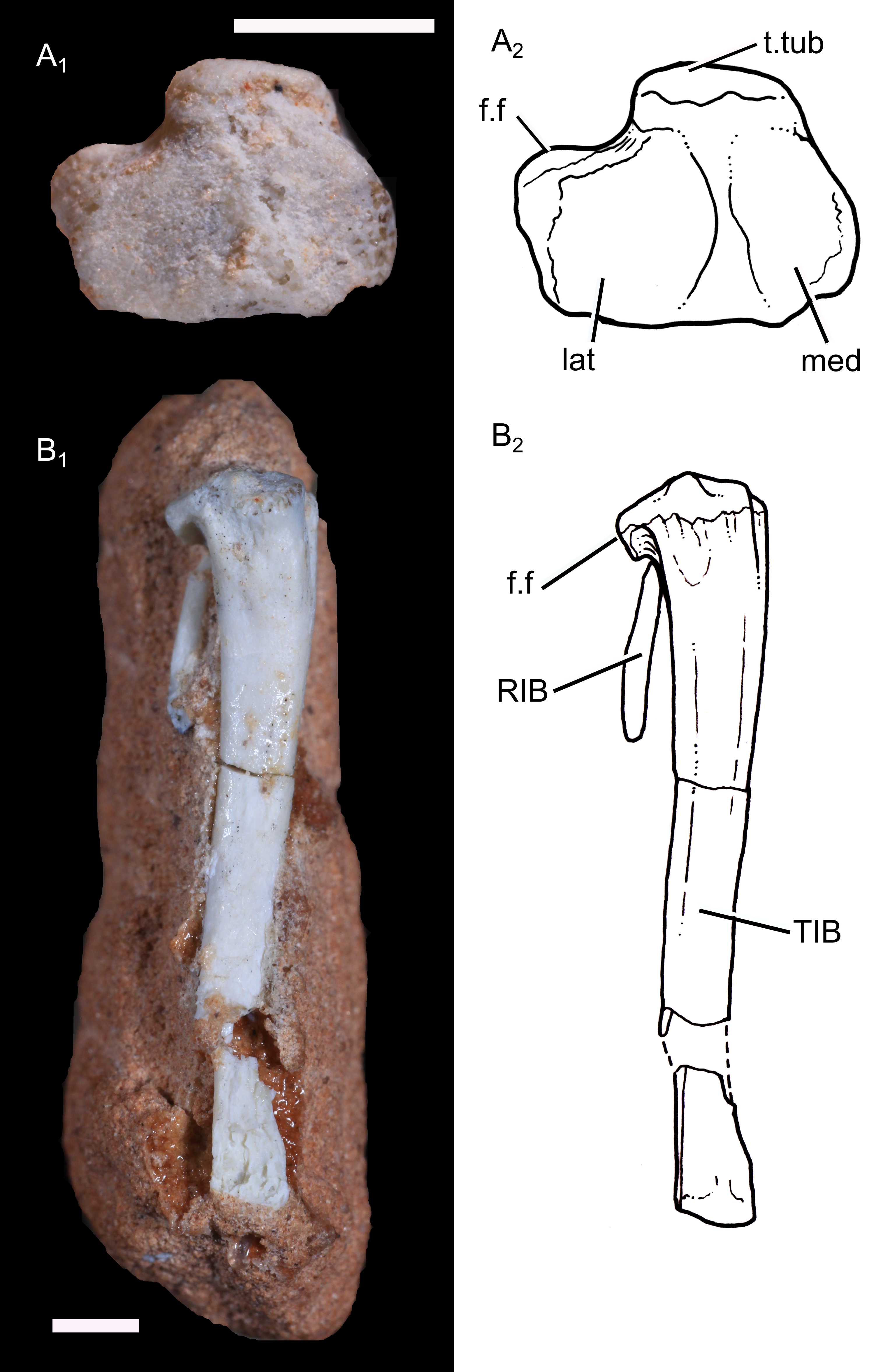 UFRGS-PV-1043-T는 거의 완전한 왼쪽 경골(정강이뼈)을 보존한다. 가늘고, 보존된 부분의 길이는 16.1mm였다. 몸통은 대부분 직선이었지만, 근위 부분(무릎쪽으로)에서 약간 안쪽(오른쪽으로)으로 구부러져 있었다; 더 기초적인 키노돈트는 일반적으로 경골의 더 강한 안쪽 곡선을 가지고 있었다. 몸통은 원위쪽 끝(발목쪽으로)으로 갈수록 점차적으로 더 평평해졌다. 근위 부분에는 넙다리 연골과 연결되는 내측 경골 연골과 외측 경골 연골의 두 개의 관절면이 있었다. 외측면은 내측면보다 넓었다. 경골의 원위쪽 끝은 보존되지 않았다.