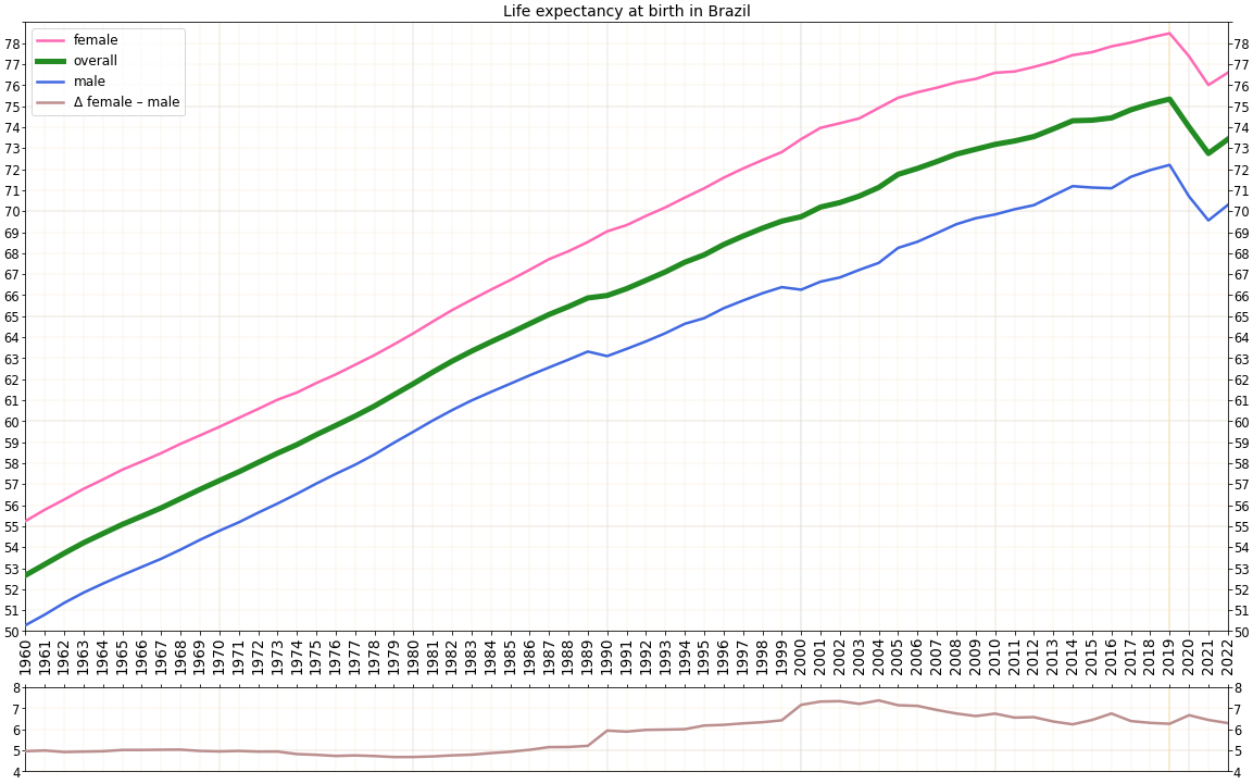 1940년부터 2018년까지 브라질의 합계출산율은 다음과 같다.[119]