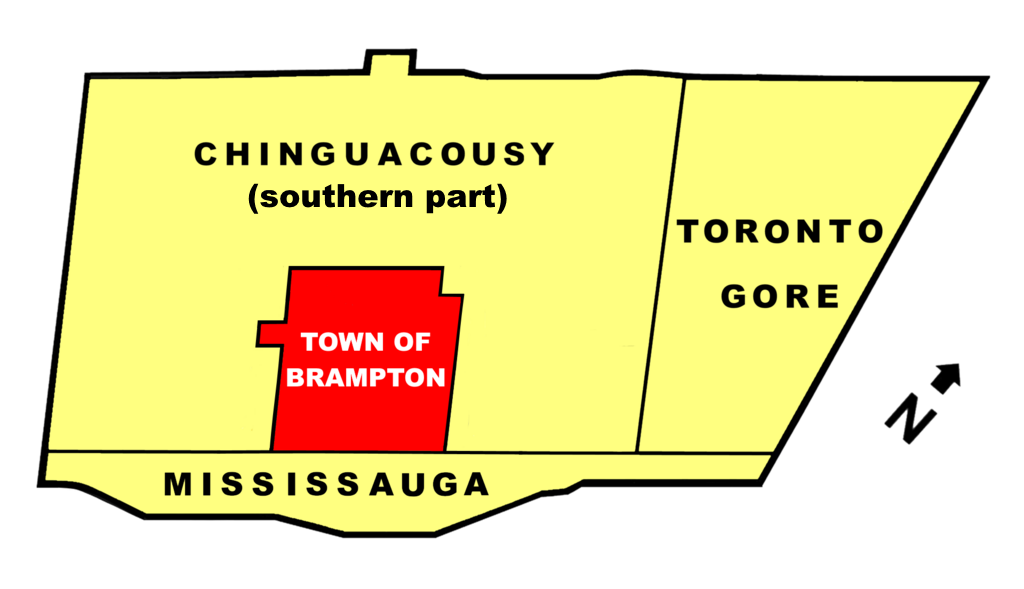브램턴은 1974년에 인구가 많은 브라말리아 지역을 포함한 칭구아코지 및 토론토 고어 타운십을 합병했다.[39]