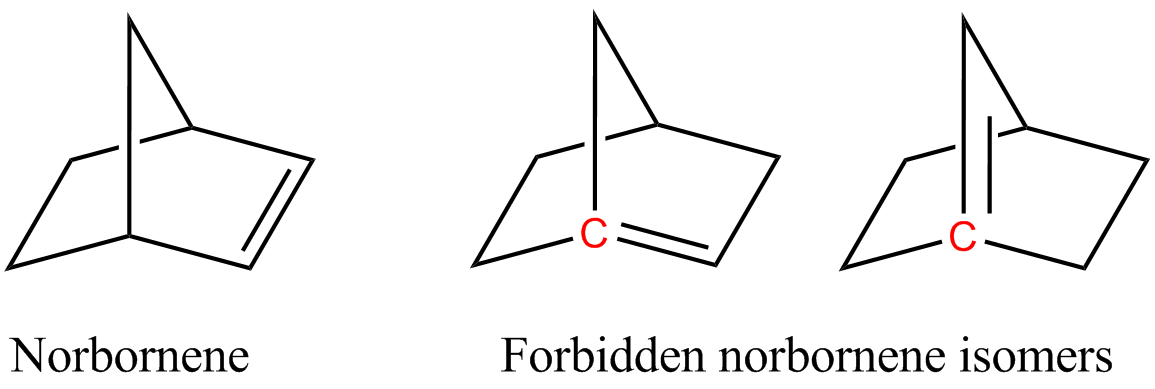 이중 결합은 평면 구조를 취하는 것이 안정적인 배치이다. 그러나 트랜스 배치의 이중 결합을 가진 7원환 이하의 환상 알켄에서는 평면 구조를 취할 수 없기 때문에 반응성이 매우 높아 안정적으로 존재할 수 없다. 교두 위치에 이중 결합을 가진 화합물에서는 그 이중 결합을 포함하는 고리의 한쪽에 대해 트랜스 배치를 취할 수밖에 없기 때문에 반응성이 높아 단리할 수 없다.