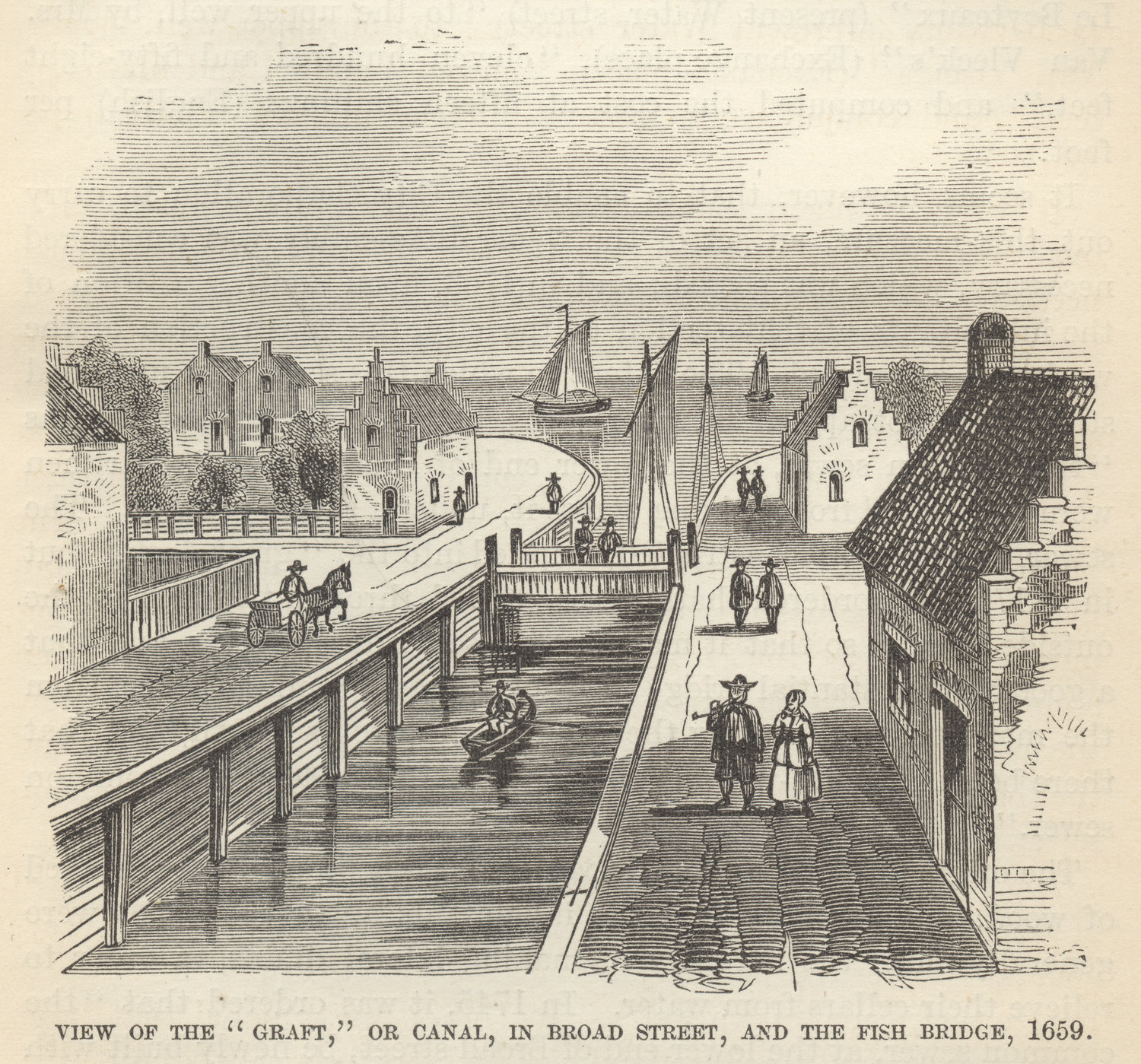 1676년에 운하는 메워졌는데, 그 이유는 미국 원주민을 포함한 과일 및 채소 판매상들이 롱아일랜드에서 카누를 타고 와서 그 지역을 어지럽게 만들었고, 운하를 사용할 수 있을 정도로 작은 선박이 점점 줄어들었기 때문이다.[8] 운하 옆 집들의 앞길도 1676년에 포장되었다.[9] 이 도로는 1693년에 처음으로 포장되었다. 이 거리는 네덜란드에서 대영 왕국의 통치를 거쳐 마침내 독립적인 미국으로 바뀌면서 수 세기에 걸쳐 많은 변화를 겪었다. 18세기에 브로드 스트리트의 입주자 중에는 서점 주인인 개럿 노엘도 있었다.[10]
