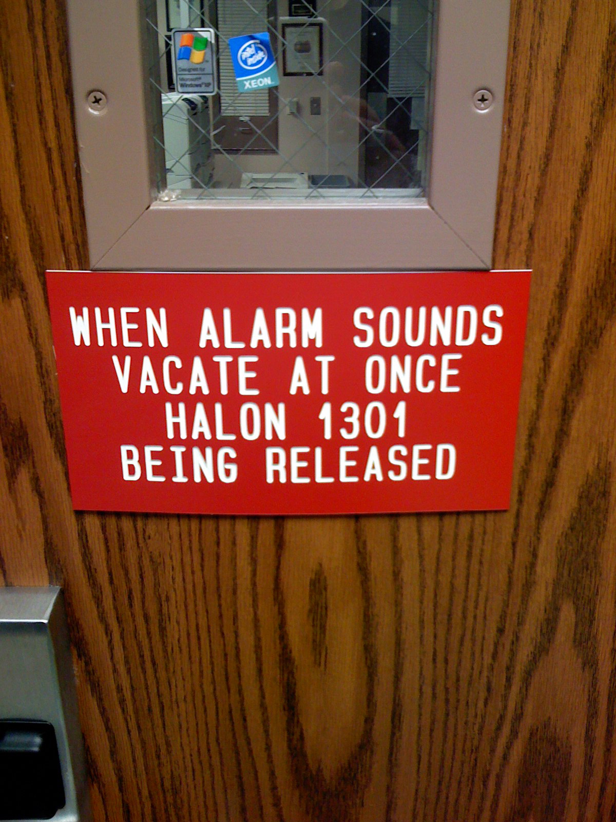 일반적으로 점유되는 구역의 대체 물질로는 PFC-410 (CEA-410), C3F8 (PFC-218 또는 CEA-308), HCFC Blend A (NAF S-III), HFC-23 (FE 13), HFC-227ea (FM 200), IG-01 (아르곤), IG-55 (아르고나이트), HFC-125, HFC-134a 등이 있다. 일반적으로 비어 있는 구역의 경우 대체 물질에는 이산화 탄소, 가루 형태의 에어로졸 C, CF3I, HCFC-22, HCFC-124, HFC-125, HFC-134a, 겔화된 할로카본/건조 화학 물질 현탁액(PGA), 불활성 가스 혼합물, 고팽창 발포 시스템, 가루 에어로졸(FS 0140), IG-541 (Inergen) 등이 있다.[15]