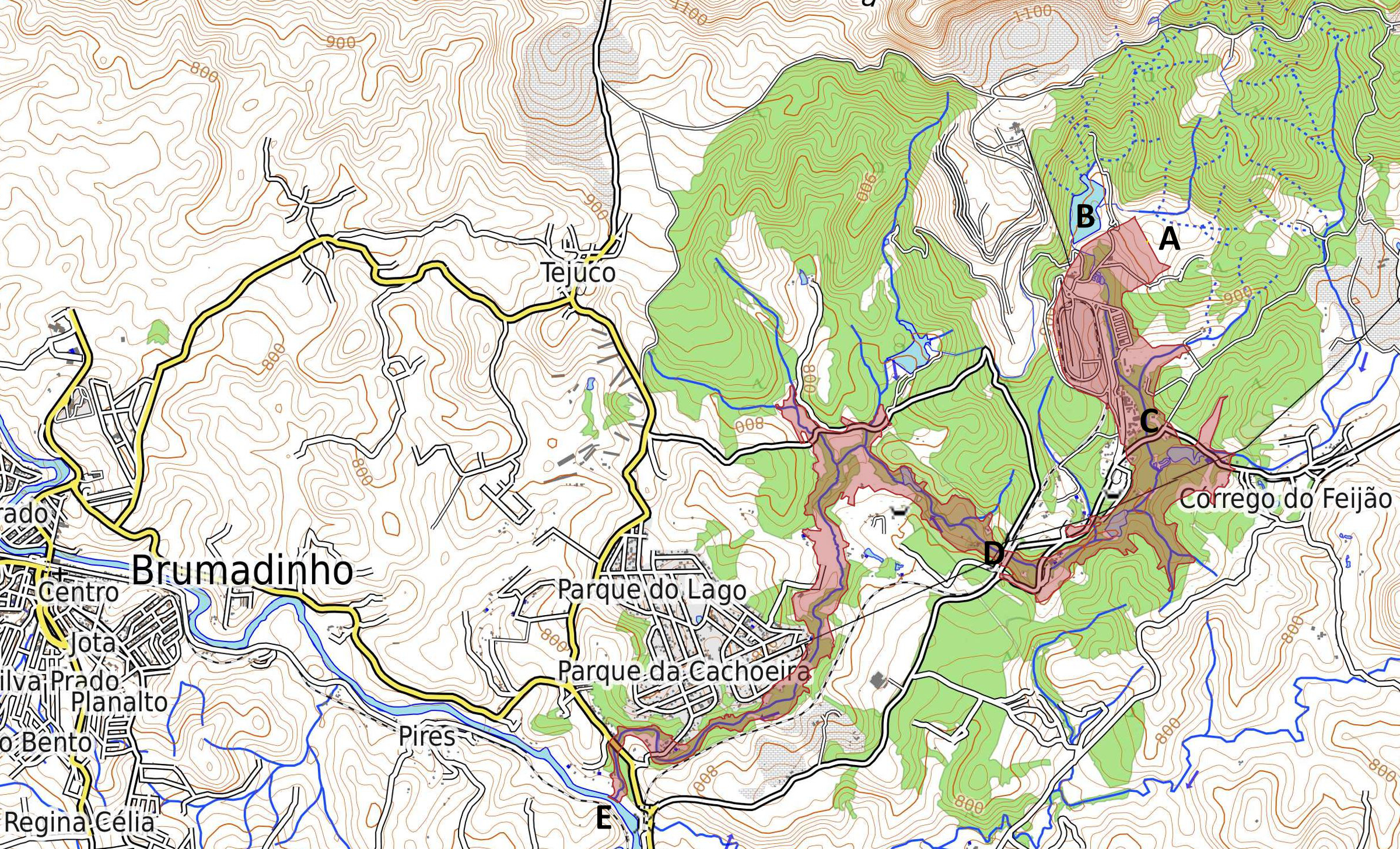 미나스제라이스 환경 방어 협회(AMDA)의 마리아 달체 리카스(Maria Dalce Ricas) 집행 위원은 해당 지역의 특성으로 인해 심각한 환경 영향이 있을 것이라고 반박했다. 그녀는 폐기물 흐름이 벨루오리존치(Belo Horizonte)와 브루마지뉴(Brumadinho)를 연결하는 도로를 가로질러 파라오페바 강(Paraopeba River)으로 이어질 것이며, 그곳에는 많은 대서양 숲과 많은 동물군이 있으며, 숲의 일부를 파괴하고 많은 야생 동물을 죽이면서 물에 도달할 것이 확실하다고 말했다. 또한 독성 진흙으로 인해 물을 더 이상 소비할 수 없게 되어 채취가 중단되어야 한다고 말했다.[27]