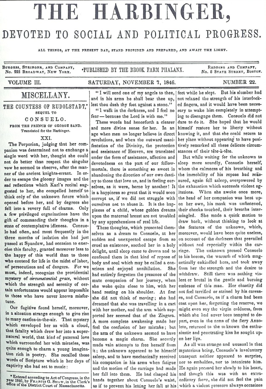 1846년 11월 7일, 브룩팜에서 인쇄된 ''선구자''의 호