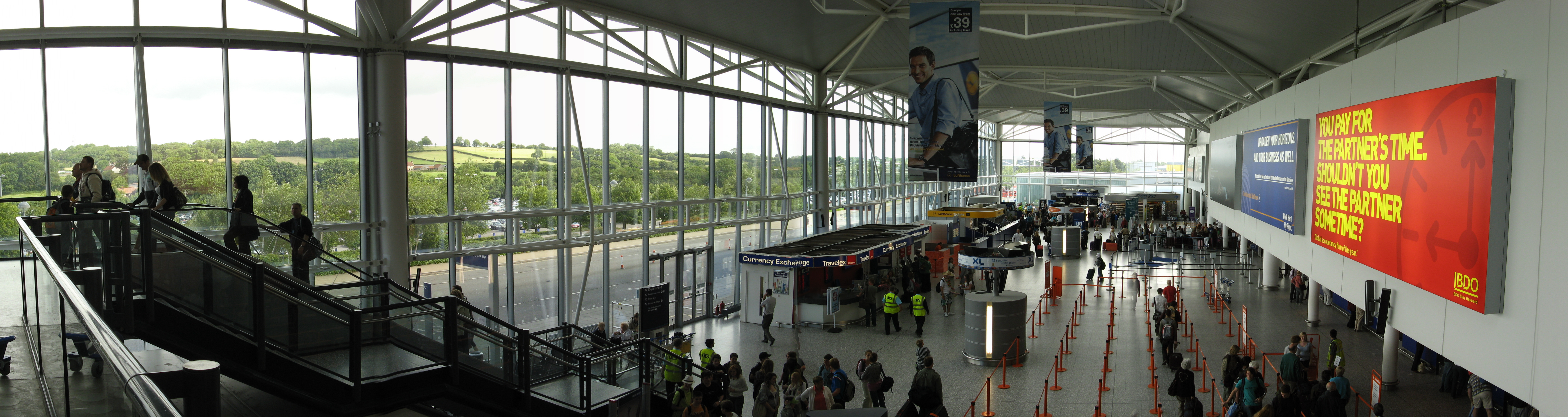 2015년 7월, 공항은 더 넓은 출발 라운지와 야외 테라스를 갖춘 860만파운드 규모의 동쪽 터미널 확장을 개장했다. 이후 2400만파운드 규모의 서쪽 터미널 확장 공사가 시작되었다.[72] 2016년 여름, 9000m2 규모의 서쪽 확장 공사 첫 단계가 완료되어 패스트 트랙 구역을 포함한 12개의 보안 검색대가 있는 새로운 출발 보안 검색 구역이 마련되었다. 수하물 수취소 및 세관 시설을 포함한 도착 구역은 2016년 말에 개장할 예정이었다.[73] 2016년 10월, 공항은 이민 홀을 확장하는 추가 프로젝트를 2017년에 완료할 것이라고 발표했다. 이 공사는 2017년 4월에 완료되어 일반에 공개되었으며, 이를 통해 여권 심사 지점이 10개에서 17개로 증가했고, 그중 10개는 전자 여권 게이트였다.[74]