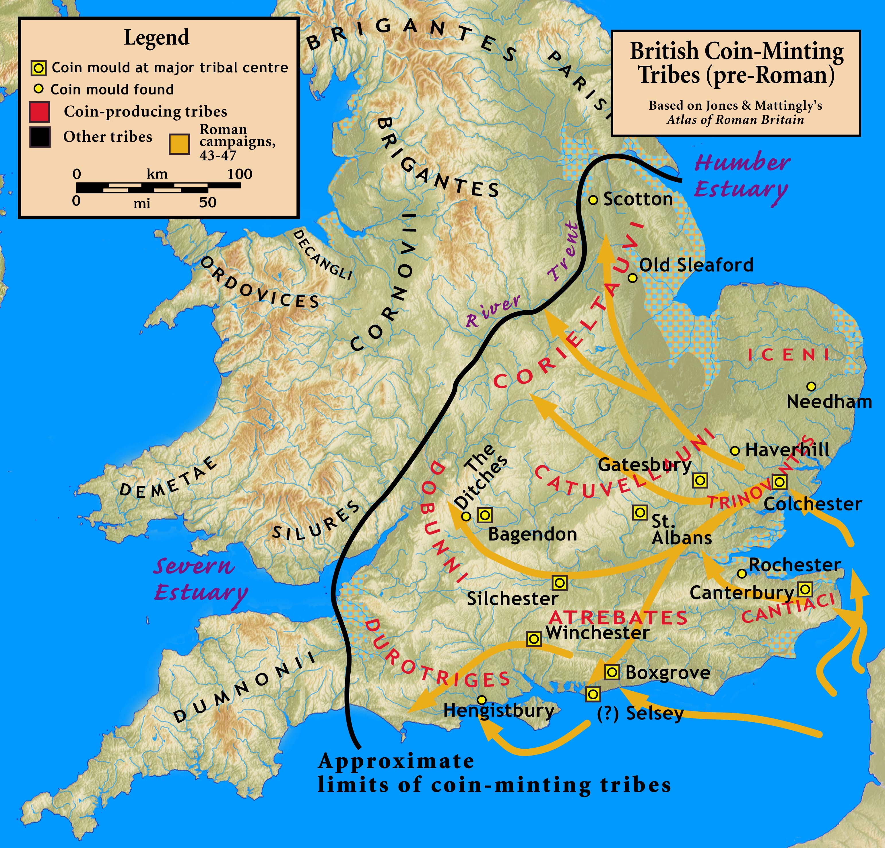 로마는 브리타니아 남부에서 카투벨라우니(타시오바누스의 후손이 통치)와 아트레바테스(콤미우스의 후손이 통치) 두 강력한 왕국 간의 세력 균형을 유지하려 했던 것으로 보인다.[21] 이 정책은 기원후 39년 또는 40년까지 계속되었는데, 이때 칼리굴라가 카투벨라우니 왕조의 망명자를 받아들이고 브리타니아 침략을 계획했지만, 갈리아를 떠나기도 전에 다소 우스꽝스러운 상황 속에서 무산되었다.[22][23] 클라우디우스가 기원후 43년에 성공적으로 침략했을 때, 그것은 아트레바테스의 또 다른 도망친 통치자 베리카를 돕기 위한 것이었다.