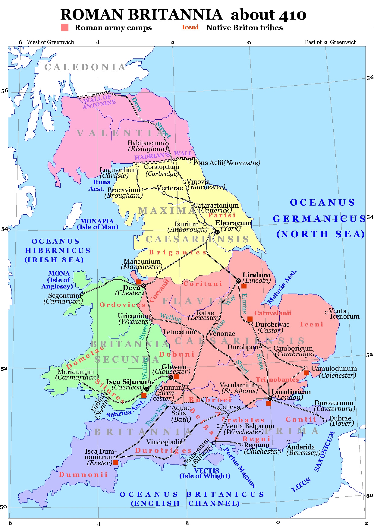 브리타니아는 로마가 브리튼 섬을 지칭한 이름으로, 율리우스 카이사르의 원정을 시작으로 로마의 지배를 받았다. 서기 43년 클라우디우스 황제 시기에 본격적인 정복이 이루어졌으며, 브리타니아 속주가 설치되었다. 로마는 군사력을 기반으로 브리타니아를 통치하며 도로, 도시, 행정 체제를 구축했다. 브리튼인들의 저항과 반란, 그리고 4세기의 위기를 거치며 로마의 지배는 점차 약화되었고, 410년 이후 로마 군단의 철수와 함께 브리타니아는 앵글로색슨족의 침입을 받아 혼란에 빠졌다. 로마의 지배는 도로망, 도시 건설 등 다양한 유산을 남겼지만, 언어는 로마의 영향을 크게 받지 않았다.