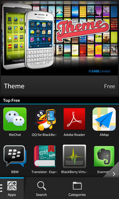 2013년 5월 블랙베리 라이브 컨퍼런스에서 블랙베리는 블랙베리 10용 앱이 120,000개 이상 블랙베리 월드에서 다운로드할 수 있다고 발표했다.