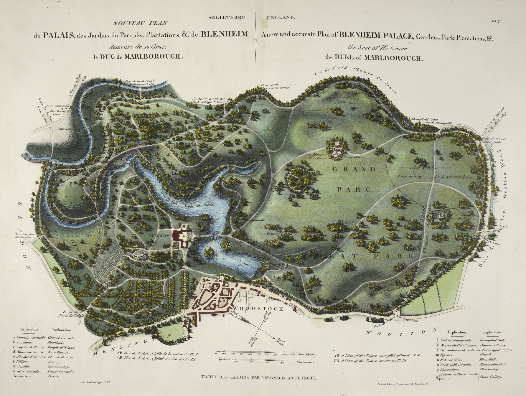 블레넘 궁전의 정원은 헨리 와이즈에 의해 낭만주의적인 영국식 정원으로 설계되었으나, 제3대 말버러 공작이 랜슬롯 브라운에게 의뢰하여 풍경식 정원으로 개조했다. 이후 아실 뒤셰에 의해 르 노트르 양식의 프랑스 정원으로 개조되어 오늘날에 이른다.