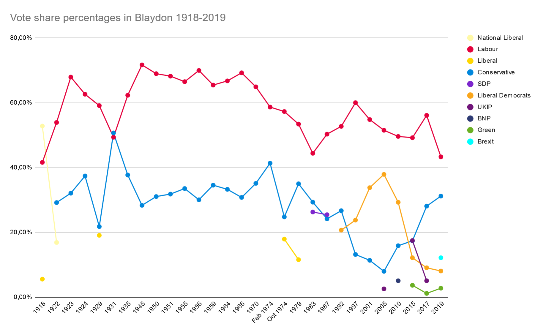 블레이던 선거구는 1920년대에 여러 차례의 총선을 거쳤다.선거 | 정당 | 후보 | 득표수 | 득표율 (%) | 변동 (%p) |