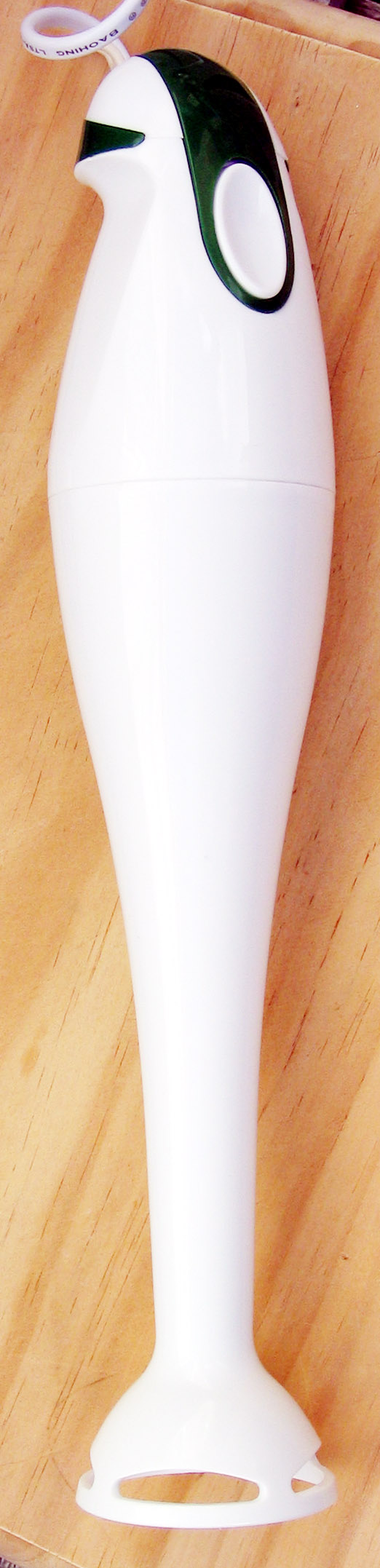 스틱형으로, 선단에 달린 회전하는 칼날을 임의의 용기에 넣어 분쇄하고 섞는 타입의 제품이다. 푸드 프로세서로도 취급되며, 믹서나 푸드 프로세서처럼 식재료를 가공할 수 있다.