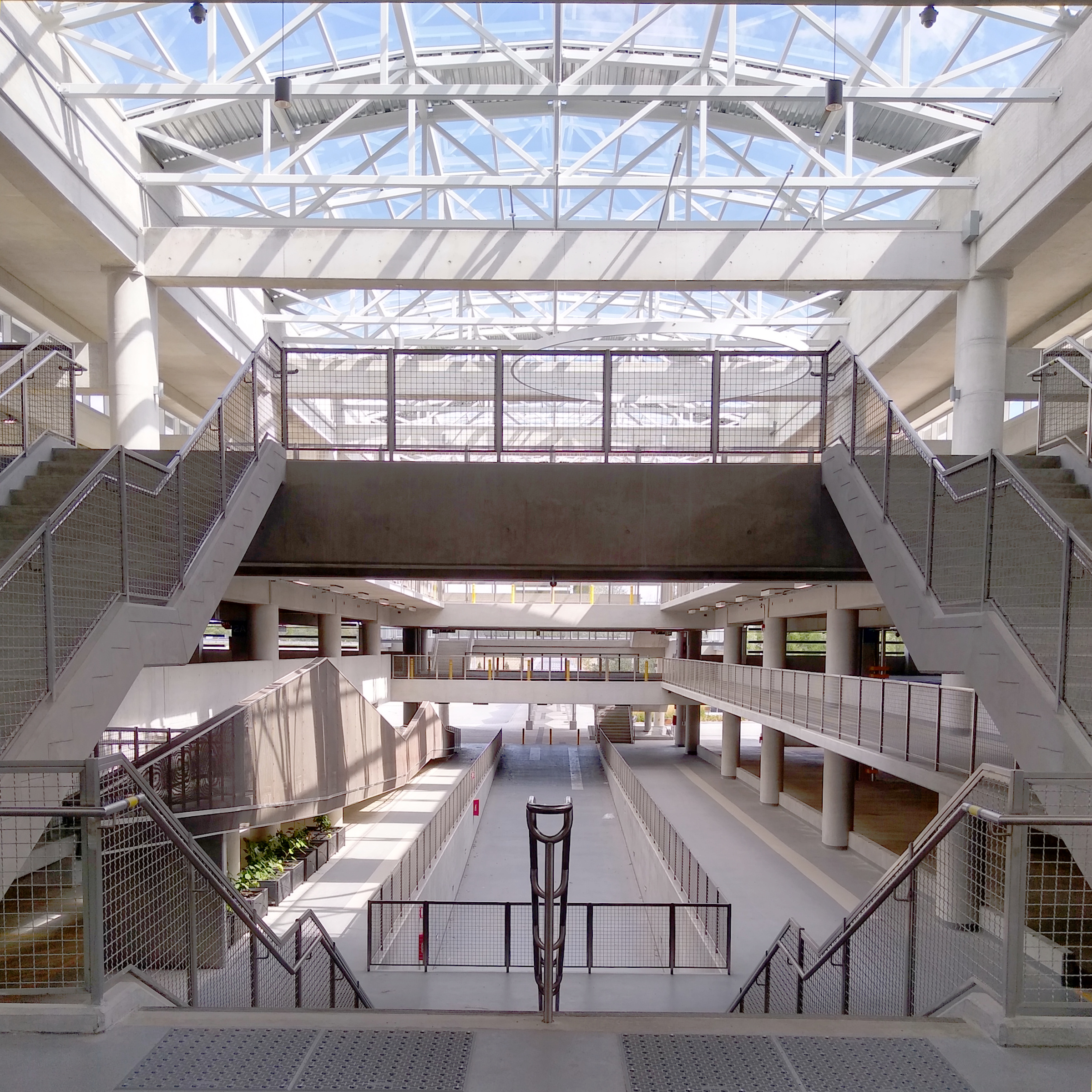 주차 시설은 다음과 같이 운영된다.구분 내용 비고 총 주차 가능 대수 998대[6][7][8] 760대는 3층 주차 타워 내 위치 환승 주차 공간 765대[16] 최대 48시간 무료 주차 가능 전기차 전용 16대[16] 장애인 전용 17대[16] 미래 계획 카풀 주차장 부지 확보[7] 온타리오 교통부 관리 예정