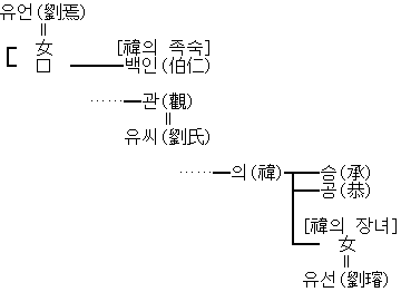 비의의 족부이자 유장의 인척이었던 비관은 유장의 딸과 결혼하여 그의 사위가 되었다. 비관의 어머니는 유장의 재당고모였다.