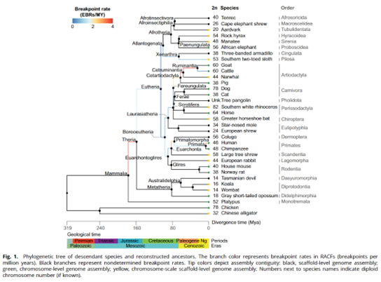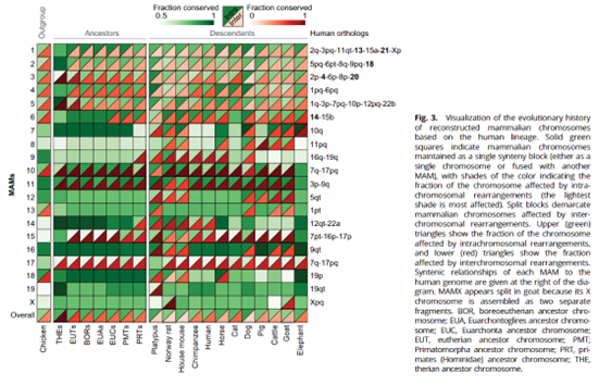 유전자 지도 작성에서 상동성 시각화는 염색체에서 보존된 유전자 순서를 확인하는 한 가지 방법이다.[58] 이는 일반적으로 공통 조상으로부터 유래된 관련 종의 염색체에 사용된다.[58] 이 방법과 다른 방법들은 진화 역사를 밝히는 데 도움이 될 수 있다. 최근 연구에서는 비교유전체학을 사용하여 포유류 계통발생학 전반에 걸쳐 16개의 조상 핵형을 재구성했다. 전산 재구성은 포유류 진화 과정에서 염색체가 어떻게 재배열되었는지 보여주었다. 이는 종종 발달 과정의 조절과 관련된 선택적 영역의 보존에 대한 통찰력을 제공했다. 또한 염색체 진화와 DNA 재배열과 관련된 유전 질환에 대한 이해를 제공하는 데 도움이 되었다.