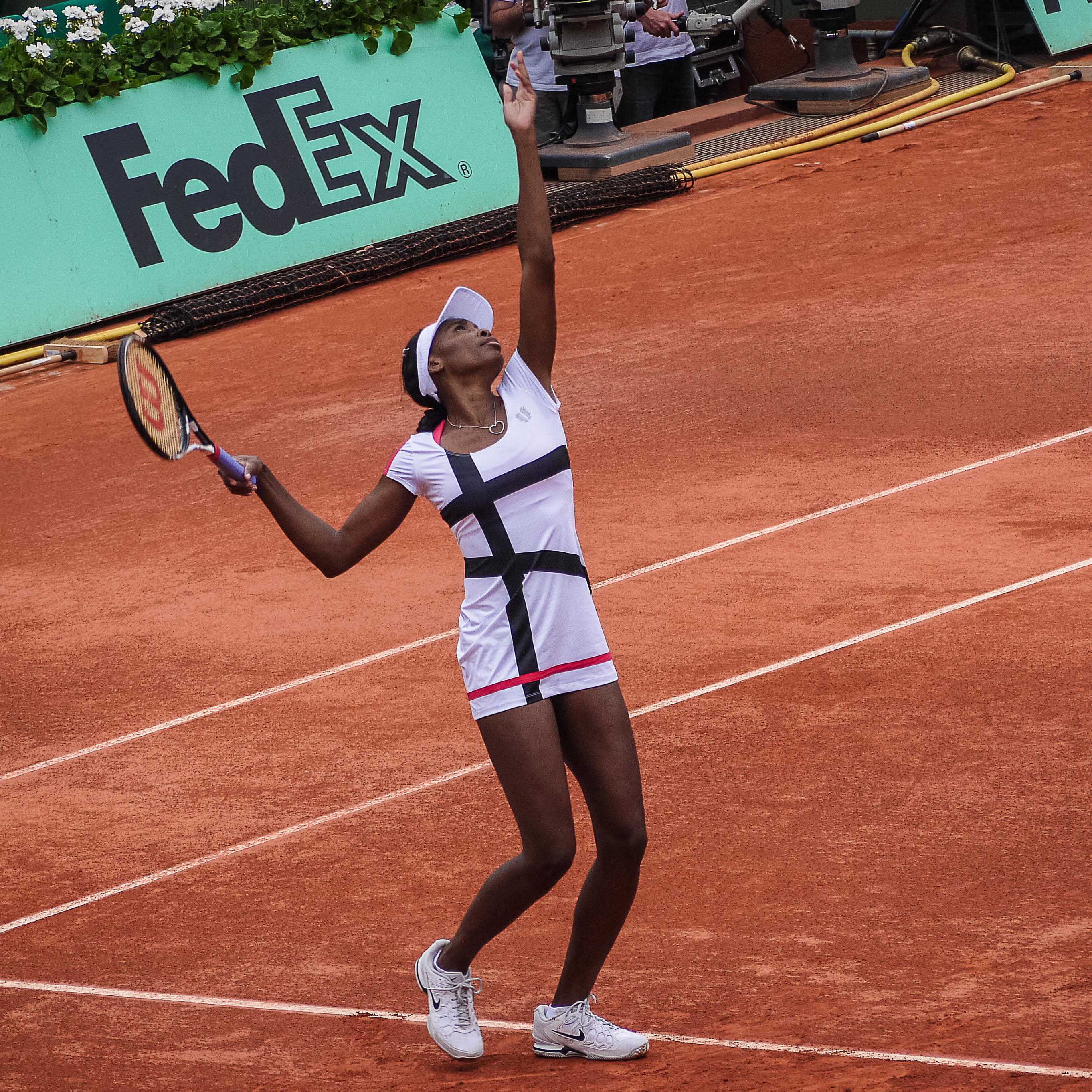 비너스 윌리엄스는 미국의 테니스 선수로, 1994년 프로로 전향하여 뛰어난 선수 경력을 쌓았다. 2000년 윔블던과 US 오픈에서 우승하며 전성기를 맞이했고, 2002년에는 흑인 여성 최초로 세계 랭킹 1위에 올랐다. 총 7번의 그랜드 슬램 단식 우승을 포함하여 수많은 타이틀을 획득했으며, 동생 세레나 윌리엄스와 함께 여자 복식에서 14개의 그랜드 슬램 타이틀을 차지했다. 2007년 윔블던에서 31위의 낮은 랭킹으로 우승하는 기록을 세우기도 했다. 또한, 4개의 올림픽 금메달을 획득하여 테니스 올림픽 메달 최다 획득 기록을 보유하고 있다. 비너스 윌리엄스는 동등한 상금을 위한 투쟁에도 적극적으로 참여하여 여자 테니스 선수들의 권익 향상에 기여했다. 선수 활동 외에도 사업가로서 V Starr Interiors를 운영하며, 패션 라인 EleVen을 런칭하는 등 다양한 활동을 펼치고 있다.