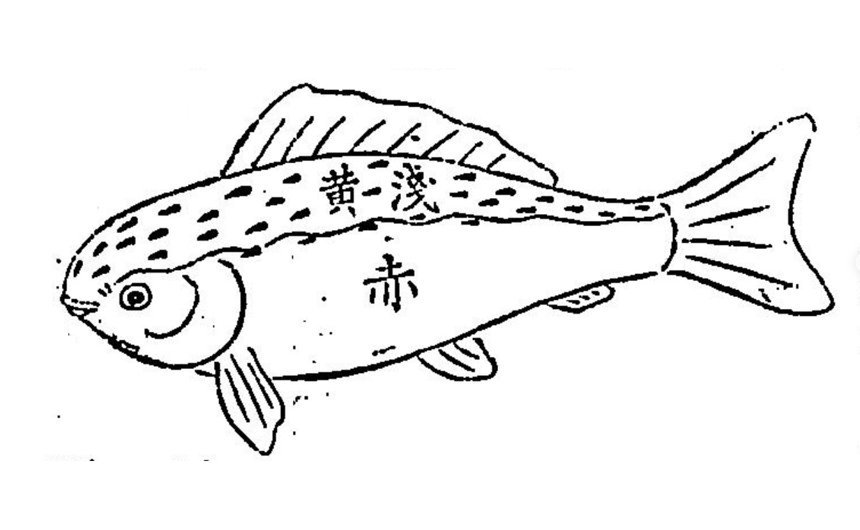 - 는 머리에 붉은 반점이 하나 있는 잉어이다.