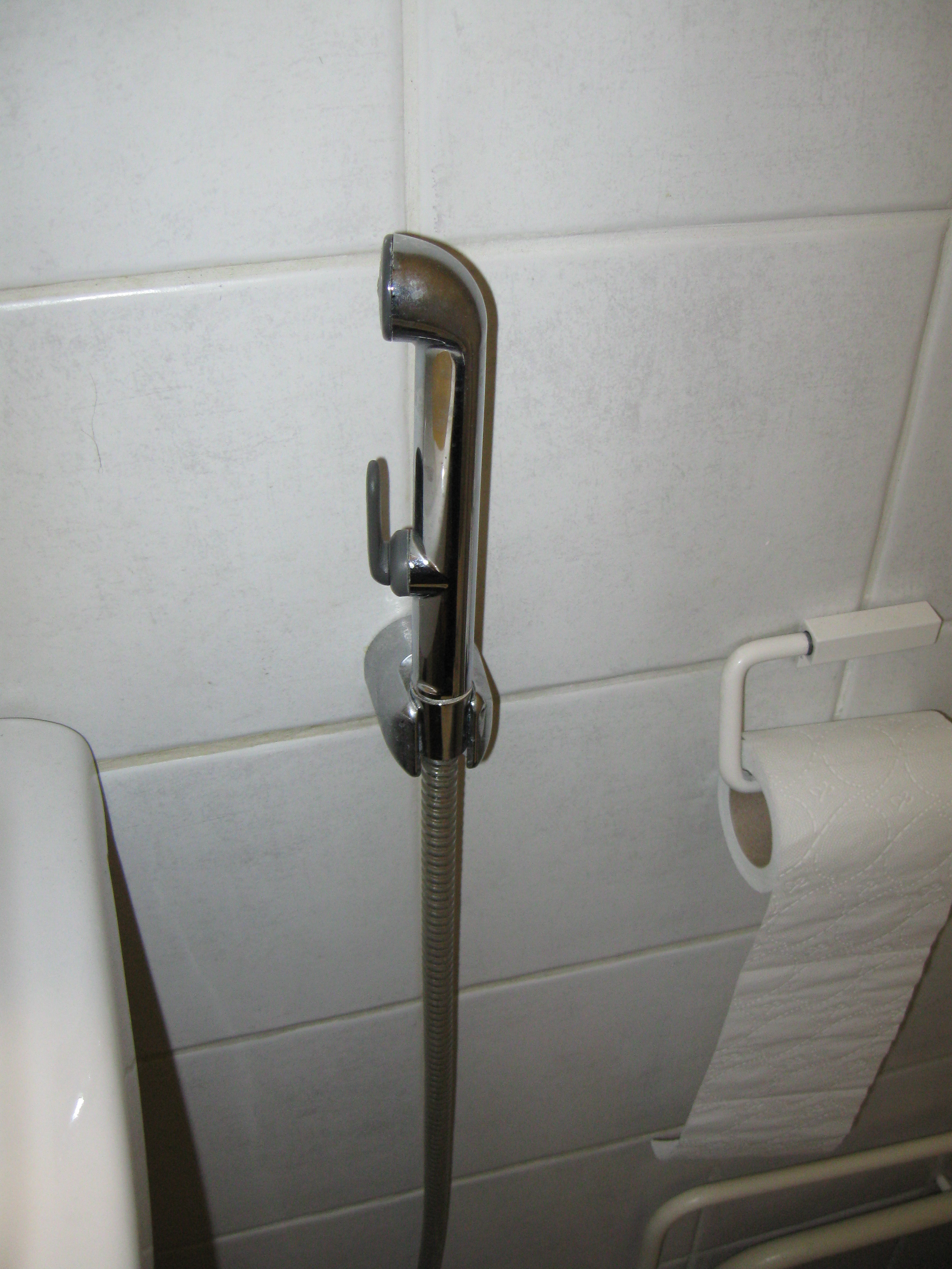 이슬람교에서는 배설에 관한 많은 엄격한 규칙이 있으며, 특히 항문을 물로 씻는 것이 요구된다.[15] 이는 이슬람교에서 대변을 본 후에 항문을 물로 세척하지 않고는 기도를 할 수 없는 등 배설에 관한 엄격한 규칙의 영향에 따른 것이다.[49][50] 이러한 이유로 이슬람 문화권 국가에서는 비데 사용이 일상화되어 있어 화장지 사용에 익숙한 여행자들은 주의가 필요하다.[49][50] 결과적으로 이슬람교가 지배적인 중동 지역에서는 대부분의 화장실에서 항문 세척을 위한 물이 제공되며, 일반적으로 손으로 잡는 "비데 샤워" 또는 '샤타프' 형태이다.6. 2. 유럽 및 기타 지역