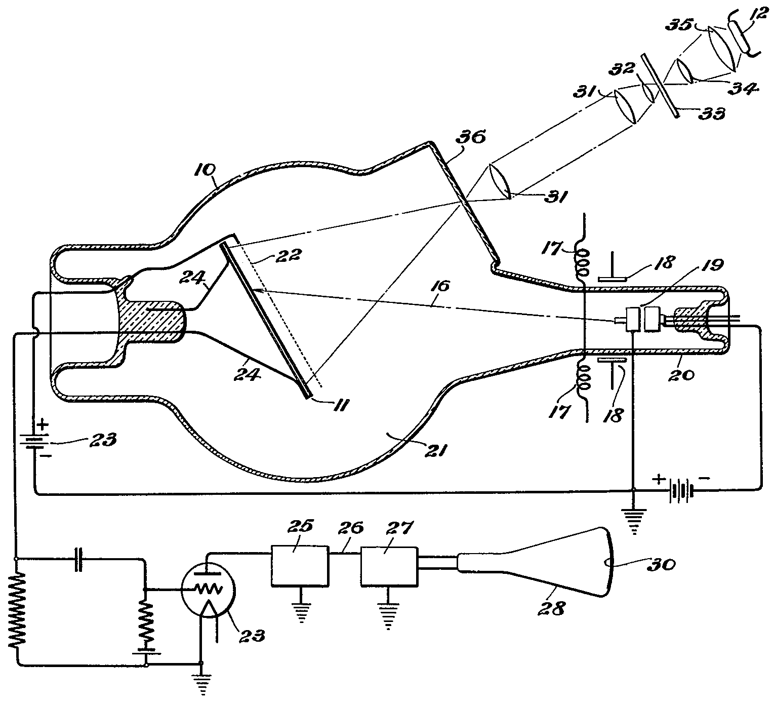 한편, CRT를 영상 장치로 사용하는 아이디어는 1921년 8월 프랑스에서 에드바르트-구스타프 슐츠가 출원하고 1922년에 공개된 특허 출원에도 나타났으나,[16] 실제로 작동하는 장치가 시연된 것은 몇 년 후의 일이었다.[15]