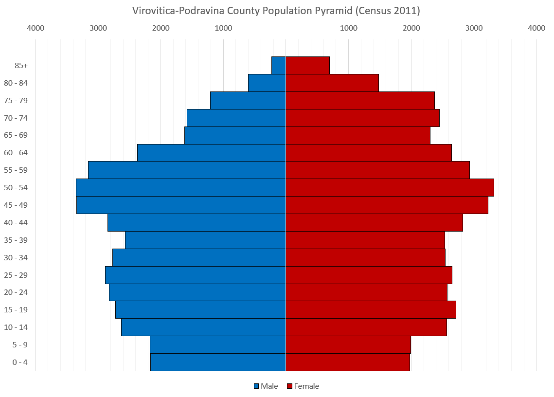 2011년 인구 조사 기준 비로비티차포드라비나 주의 인구 피라미드