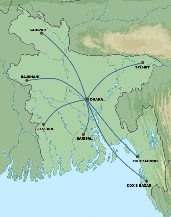 1972년 2월에 설립되어 1996년까지 방글라데시 국내선 노선을 독점했다.[10] 비만 방글라데시 항공(Biman Bangladesh Airlines)은 1972년 1월 4일 방글라데시 비만 조례(대통령령 제126호)에 따라 방글라데시의 국영 항공사로 설립되었다. 이 국영 항공사 설립은 방글라데시 독립 후 정부에 제안서를 제출한 2,500명의 전직 직원들이 주도했는데, 여기에는 파키스탄 국제 항공에서 온 10명의 보잉 707 기장과 7명의 조종사가 포함되었다. 이 항공사는 처음에는 '에어 방글라데시'라고 불렸으나 곧 현재 이름인 비만 방글라데시 항공으로 변경되었다.