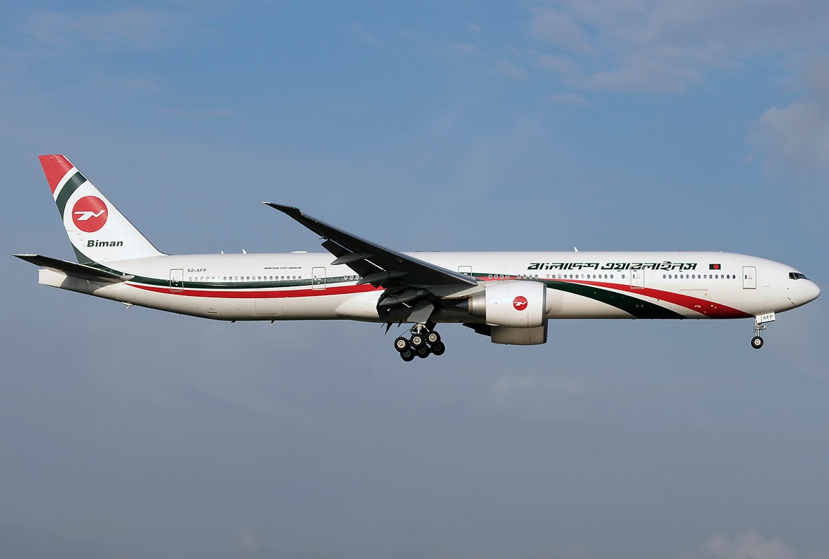 1993년부터 2006년까지 다카에서 뉴욕 (존 F. 케네디 국제공항) 노선을 운항했으나,[50][51] 미국 연방 항공청(FAA)의 안전 문제 제기로 인해 폐지되었다. 1972년 3월 4일, 보잉 707 항공기로 런던행 주간 항공편을 시작으로 최초의 국제선 운항을 시작했고, 현재 다카에서 런던 히드로 공항까지 보잉 777 항공기로 주 4회 직항편을 운항하고 있다. 최근 정시 운항 실적이 개선되었으나, 2007년 런던 히드로 공항과 두바이 국제공항 등 주요 국제공항으로부터 항공편 일정 준수 실패에 대한 비판을 받았고, 2008년 유엔은 안전 및 보안 문제와 불안정한 항공편 일정을 이유로 직원들에게 비만 항공 이용 자제를 권고했다.