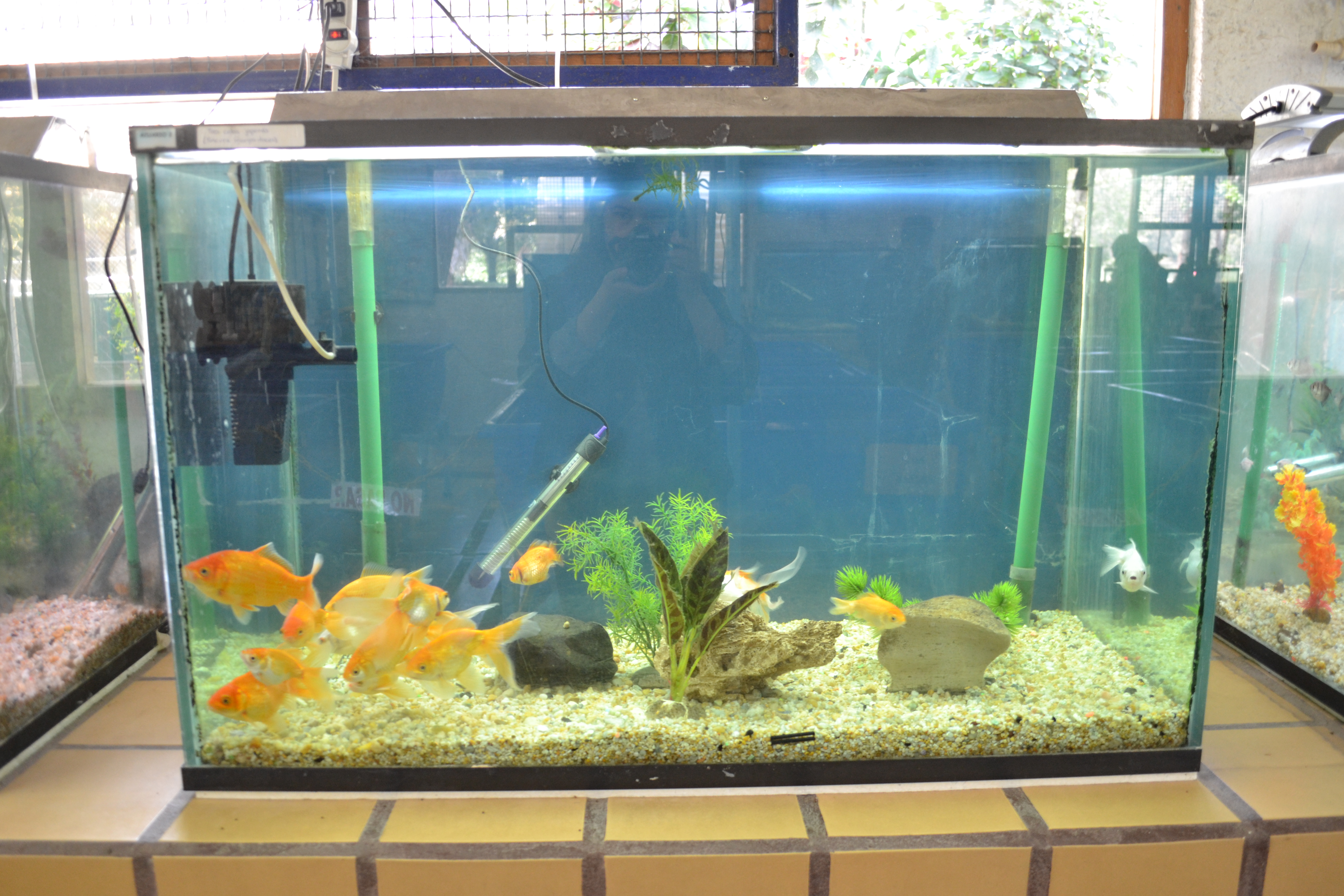 - 아쿠아리움: 어류와 같은 수중생물이 살아가도록 만든다. 아쿠아리움('aqua' = 물)은 물고기와 같은 수생 식물 및/또는 동물을 수용하는 물이 채워진 인클로저이다. 생물학적 활성 수족관에는 유익한 박테리아와 같은 미생물과 새우, 권투 새우, 조류를 먹는 달팽이 및 굴착 달팽이와 같은 청소 동물 종이 추가로 포함된다. 수족관의 적어도 한쪽 면은 수중에서 보는 것처럼 측면에서 수생 서식지를 볼 수 있도록 유리가 부착되어 있다. 수족관은 또한 온도(냉수, 열대) 및 염분(담수, 기수, 해수)으로 세분화된다.