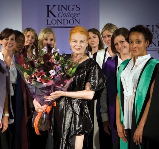 2007년, 웨스트우드는 추밀원에 학위 수여 권한을 성공적으로 청원한 후 킹스 칼리지 런던의 의장인 패트리샤 롤링스로부터 대학의 학위복을 디자인해 달라는 요청을 받았다.[40] 2008년, 웨스트우드가 디자인한 킹스 칼리지의 학위복이 공개되었다. 웨스트우드는 학위복에 대해 "전통적인 로브를 다시 만들면서 과거, 현재, 미래를 연결하려고 했습니다. 우리는 우리가 아는 존재입니다."라고 언급했다.[40]