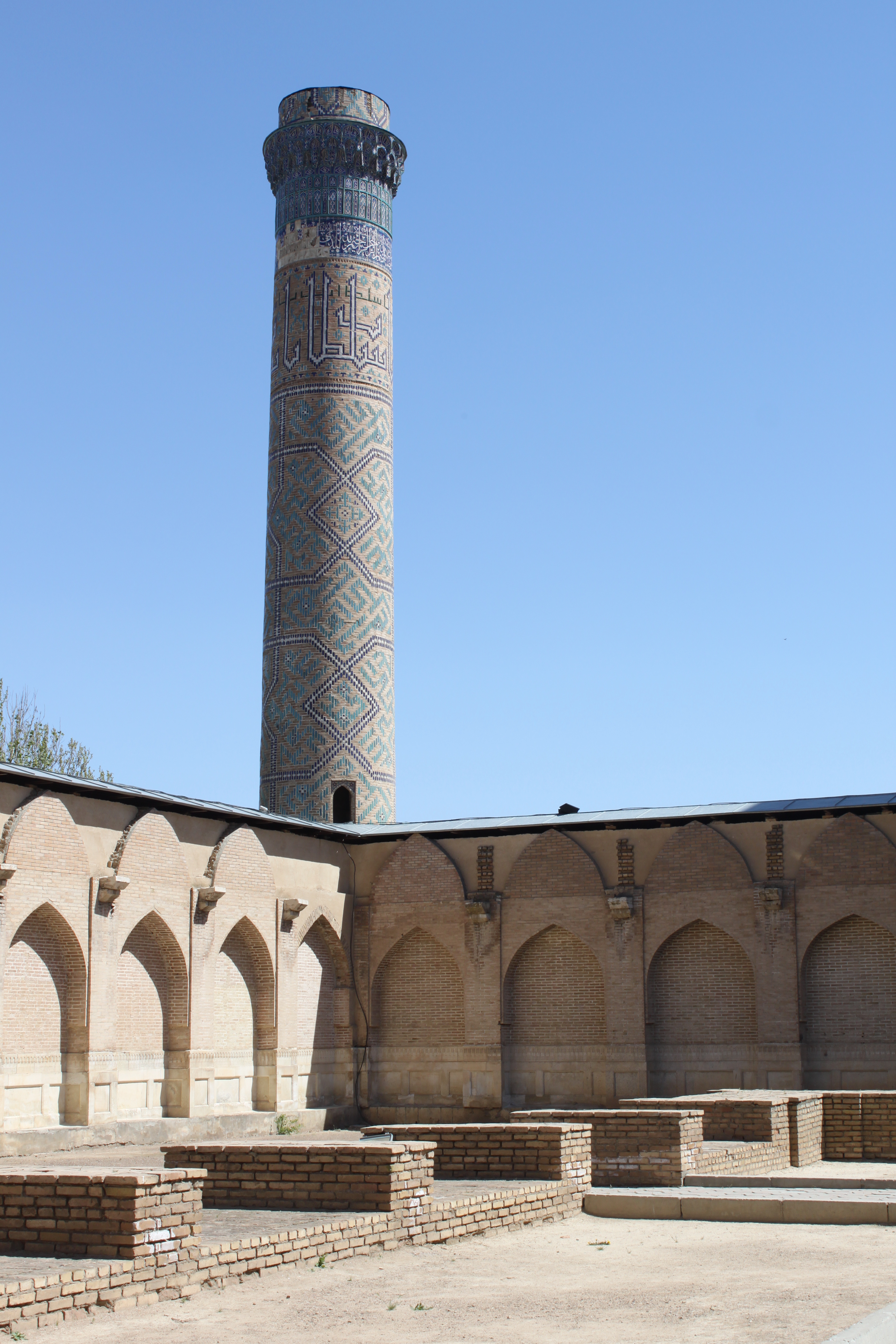 부지 외부 모서리에 있는 4개의 미나렛은 복원되었다. 입구 포털 아치와 주요 돔형 건물의 피쉬타크 양쪽에 배치된 다른 4개의 웅장한 미나렛은 아직 완성되지 않았다.