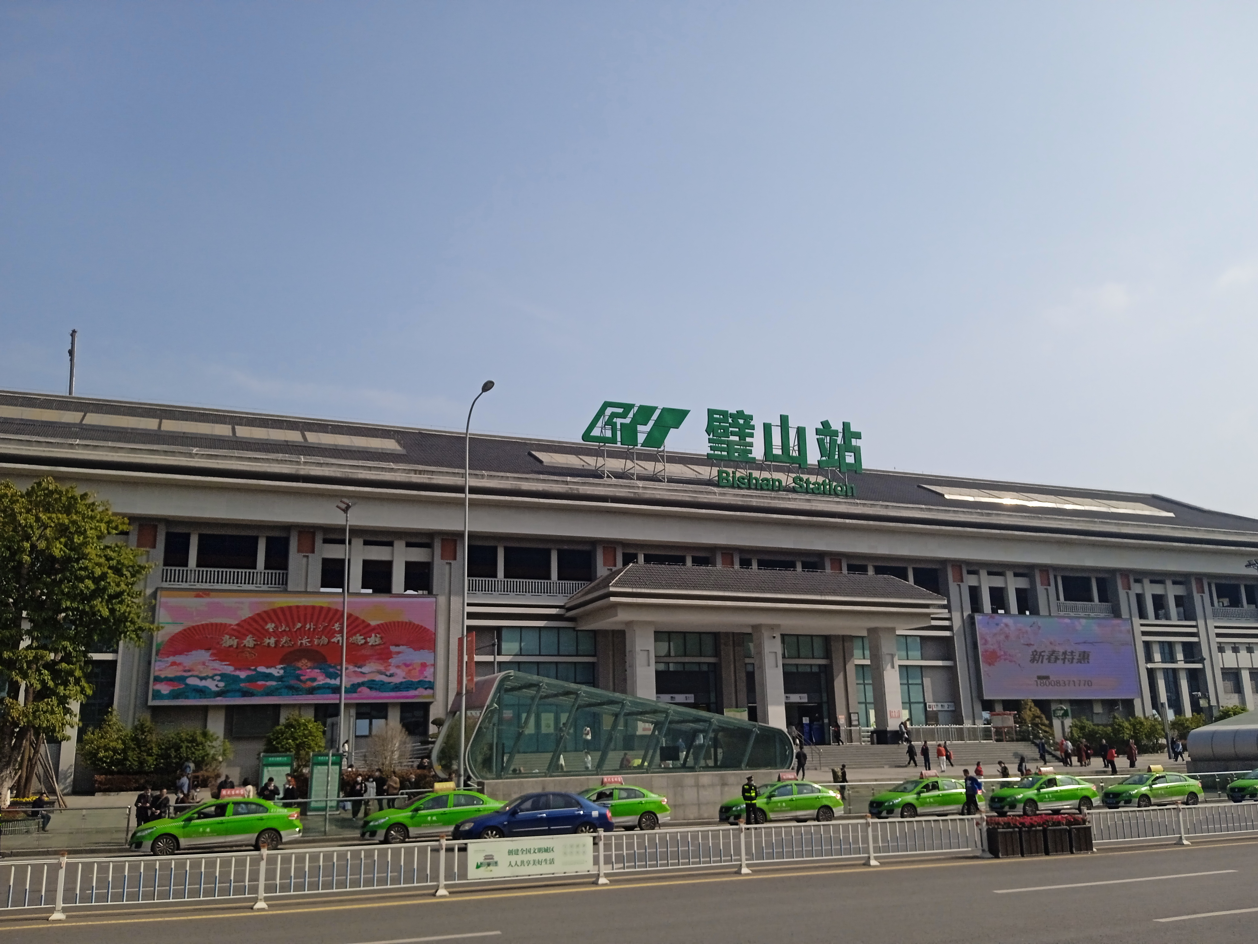 비산 철도역 건설은 2012년에 시작되어 2014년 12월에 완공되었으며, 2015년 12월 26일에 개통되었다. 이 역은 2015년 6월 여객 운송을 시작한 청두-충칭 성제 철로 노선에 위치하며, 비산 지역의 주요 교통 중심지 역할을 한다. 고속철도 노선 완공 이후, 비산에서 충칭시 시내까지 이동 시간이 15분으로 단축되어 충칭 도시 지역과의 통합이 더욱 강화되었다.