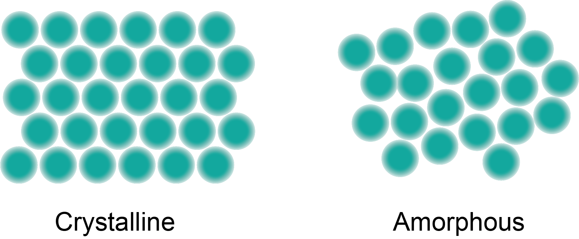 결정 상태와 비정질 상태는 같은 재료라도 전기전도도, 열전도도, 금지대폭, 투과율, 흡광도, 투자율, 물리적 강도, 내식성, 초전도성 등 물성이 크게 달라질 수 있다.[1]