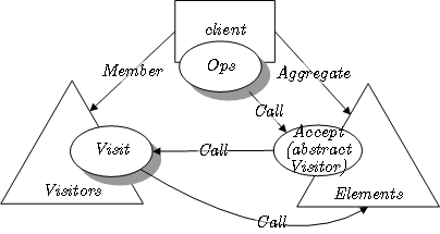 비지터 패턴은 주로 다음과 같은 요소들로 구성된다.