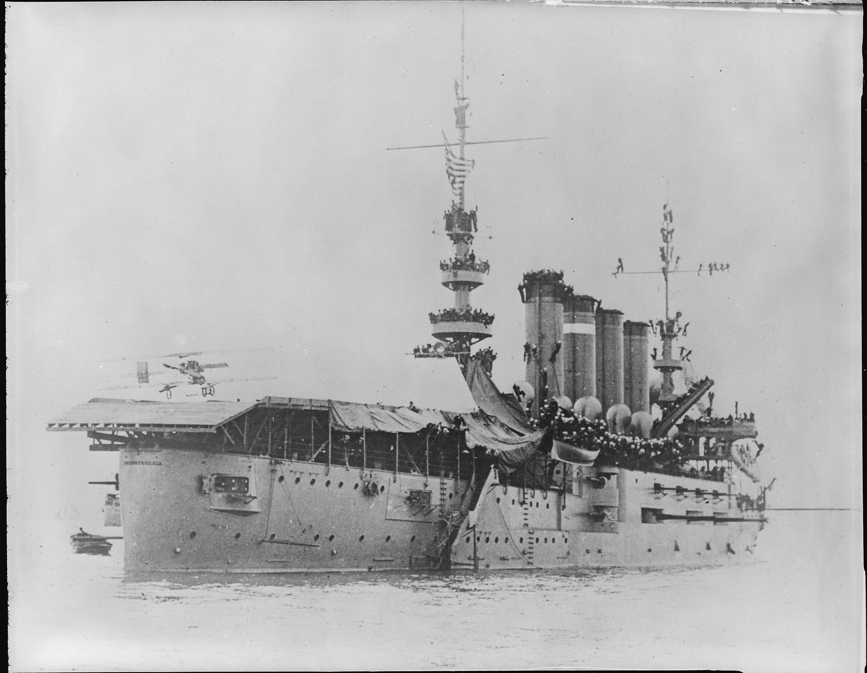 영국 해군에서는 1912년 5월 9일, 찰스 럼니 샘슨 사령관이 10.5kn 속도로 항해 중이던 전함 HMS 히베르니아에서 쇼트 S.27 비행기로 이륙하여, 항해 중인 함선에서 이륙한 최초의 인물이 되었다. 초기 항공기는 이륙 속도가 낮았기 때문에, 함선이 바람을 맞으며 항해할 경우 비교적 짧은 거리에서도 이륙이 가능했다. 이후 HMS 리펄스를 시작으로 전함과 순양전함의 주포 포탑 위에 탈착 가능한 이륙 플랫폼이 설치되어 정찰기를 운용하기도 했으나, 이 방식으로는 항공기를 회수할 수 없었다.