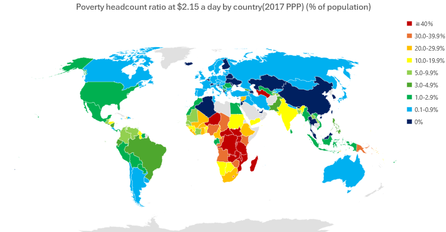 다음은 하루 2.15달러 기준 빈곤율을 나타낸 표이다.[106]