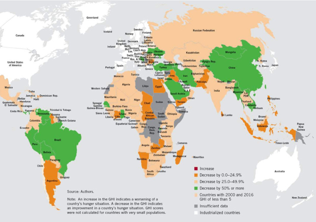 세계은행에 따르면, 1990년부터 2015년까지 세계 인구 중 극빈곤 상태에 있는 비율은 37.1%에서 9.6%로 감소했다.[78] 그러나 2013년부터 2015년까지 극빈곤 감소세가 둔화되었고, 사하라 이남 아프리카 일부 지역은 2000년대 초 수준으로 되돌아갔다.[79][80] 이는 아랍의 봄 이후 증가하는 폭력, 사하라 이남 아프리카의 인구 증가, 아프리카의 인플레이션 압력과 경제 불황 등이 주요 원인으로 지목되었다.[81][82]