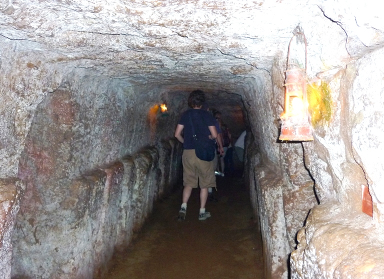 처음에는 얕게 파기 시작했지만, 미군의 폭격에 대비해 점차 깊게 파내려가 3층 구조(지하 12m, 15m, 23m)를 이루게 되었다.[3][2] 1967년, 18,000일의 노동 시간을 들여 터널을 완공했다.[3] 터널의 총 길이는 자료에 따라 약 2,000m 또는 2,800m로 알려져 있다.[4][2] 터널에는 언덕 꼭대기로 향하는 6개의 입구와 남중국해로 향하는 7개의 입구가 있다.[3]