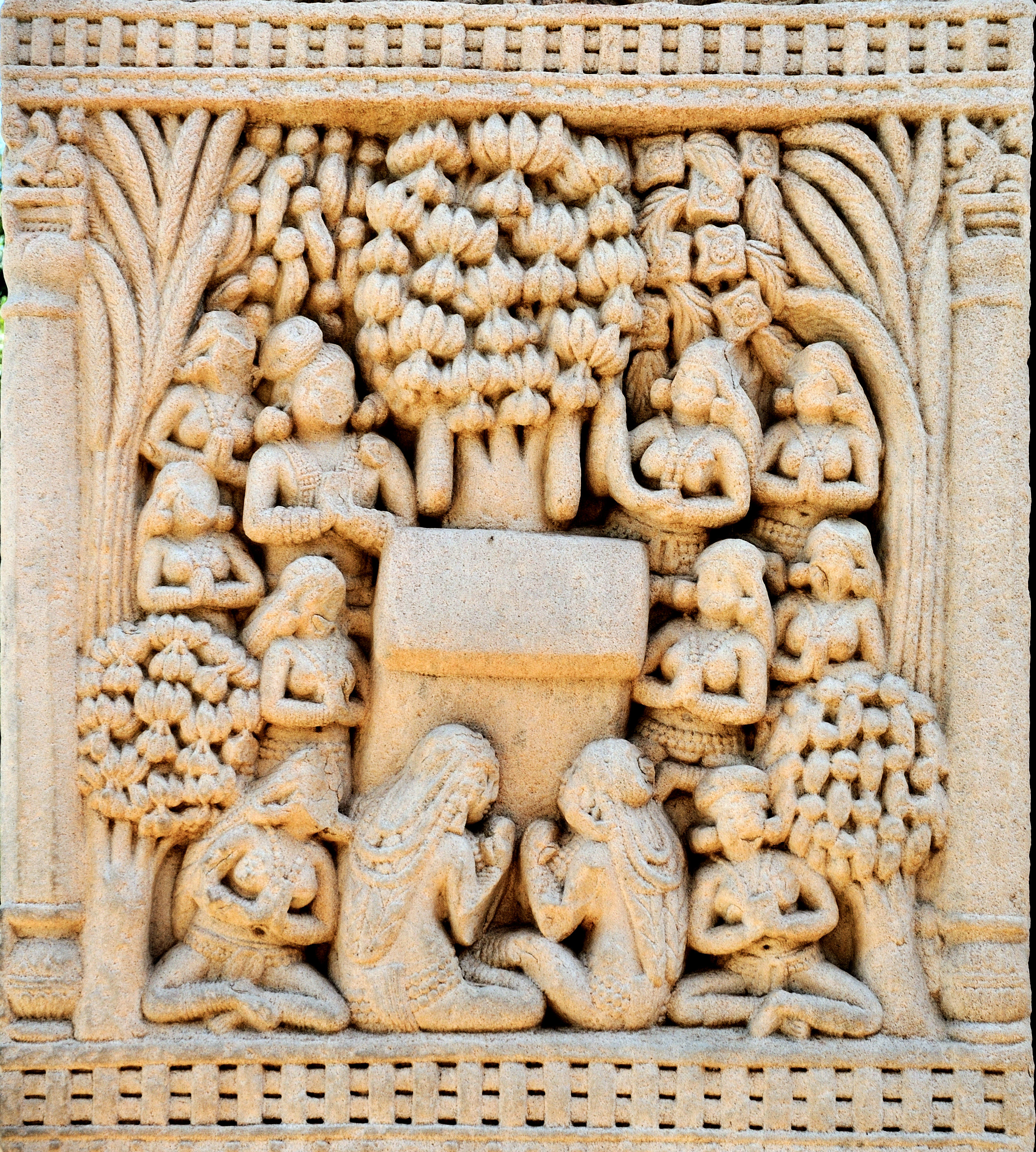 빔비사라는 궁궐의 여인들이 저녁에 부처의 승원을 방문하는 것을 허락했다. 여인들은 언제든 부처를 공경할 수 있도록 머리카락과 손톱으로 만든 탑을 원했고, 빔비사라가 부처에게 이를 청하자 부처는 요청에 응했다.[21] 만년에는 몸이 쇠약해져 직접 부처를 찾아뵙기 어려워지자, 부처의 머리카락과 손톱을 구해 궁궐 내 탑사에 안치하고 예배했다고 전해진다.