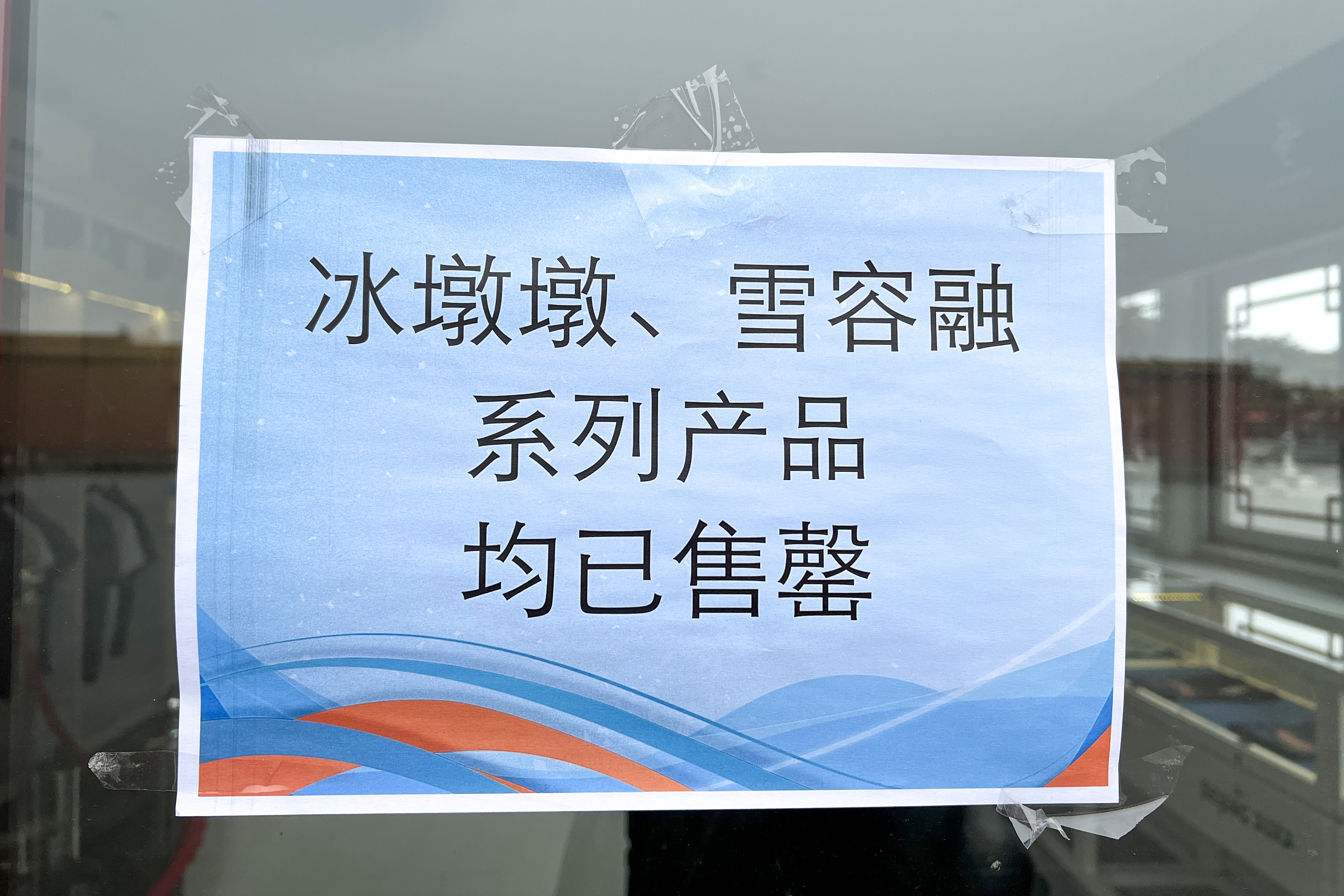 베이징의 한 상점 밖에서 마스코트의 재고가 소진되었음을 알리는 안내문