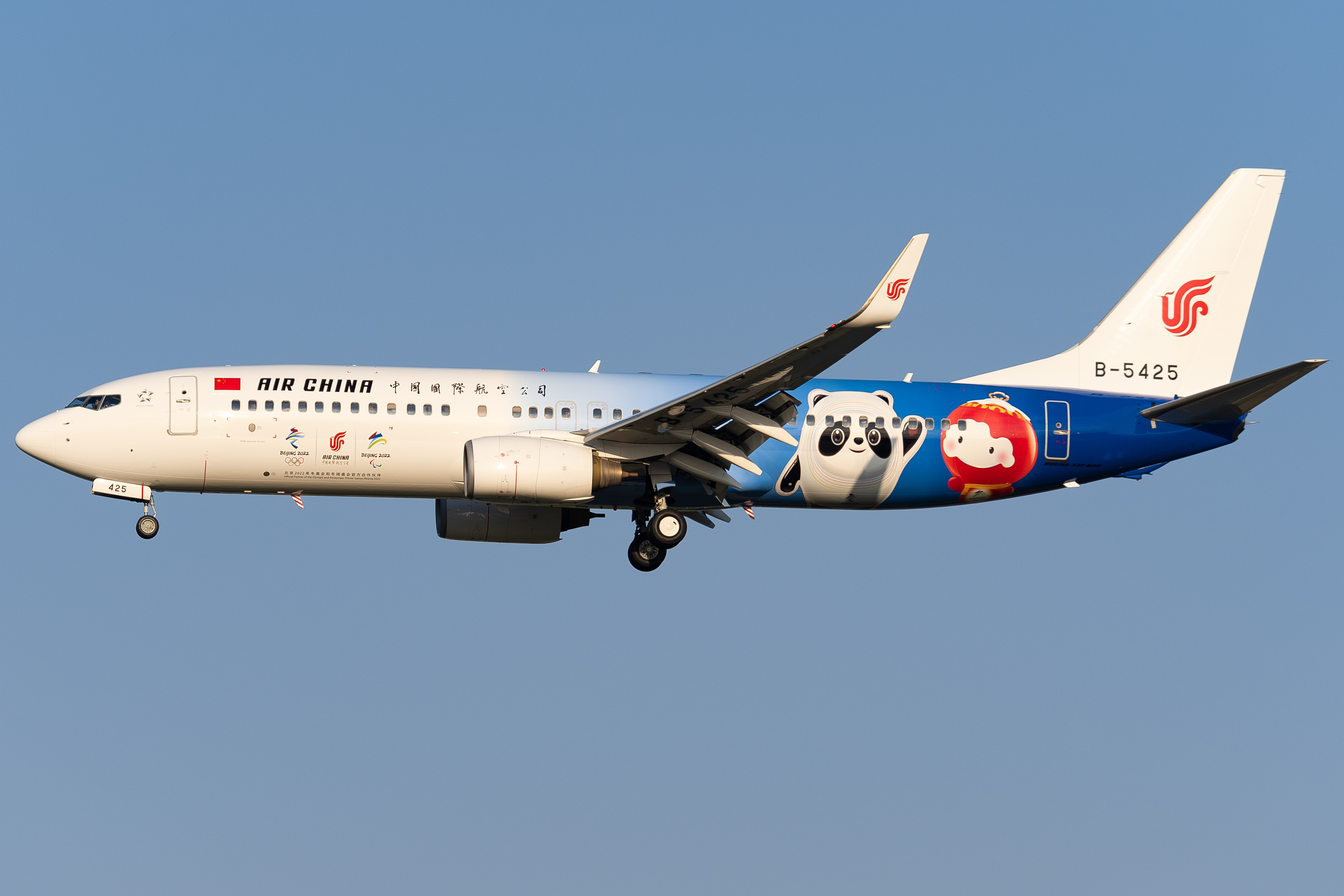 베이징올림픽·패럴림픽 홍보를 위해 빙둔둔과 쉐룽룽이 포함된 특별도장을 적용한 중국국제항공소속 보잉 737-800항공기