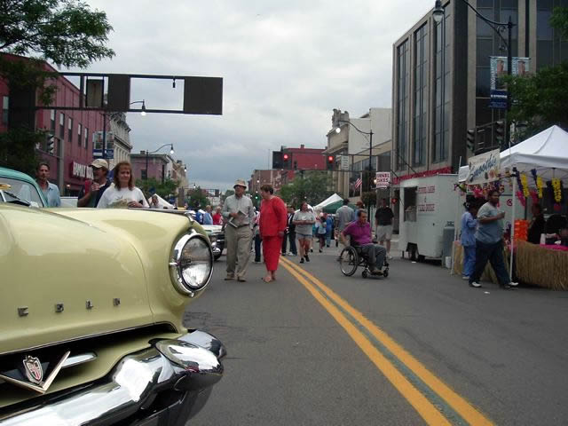 메인 스트리트는 웨스트 사이드를 지나 서쪽으로 이어져 존슨 시티와 엔디콧, 뉴욕 마을의 메인 스트리트로 이어진다. 체낭고 강 동쪽에서는 도로는 코트 스트리트가 되어 시내와 이스트 사이드의 주요 동서 간선 도로가 된다.